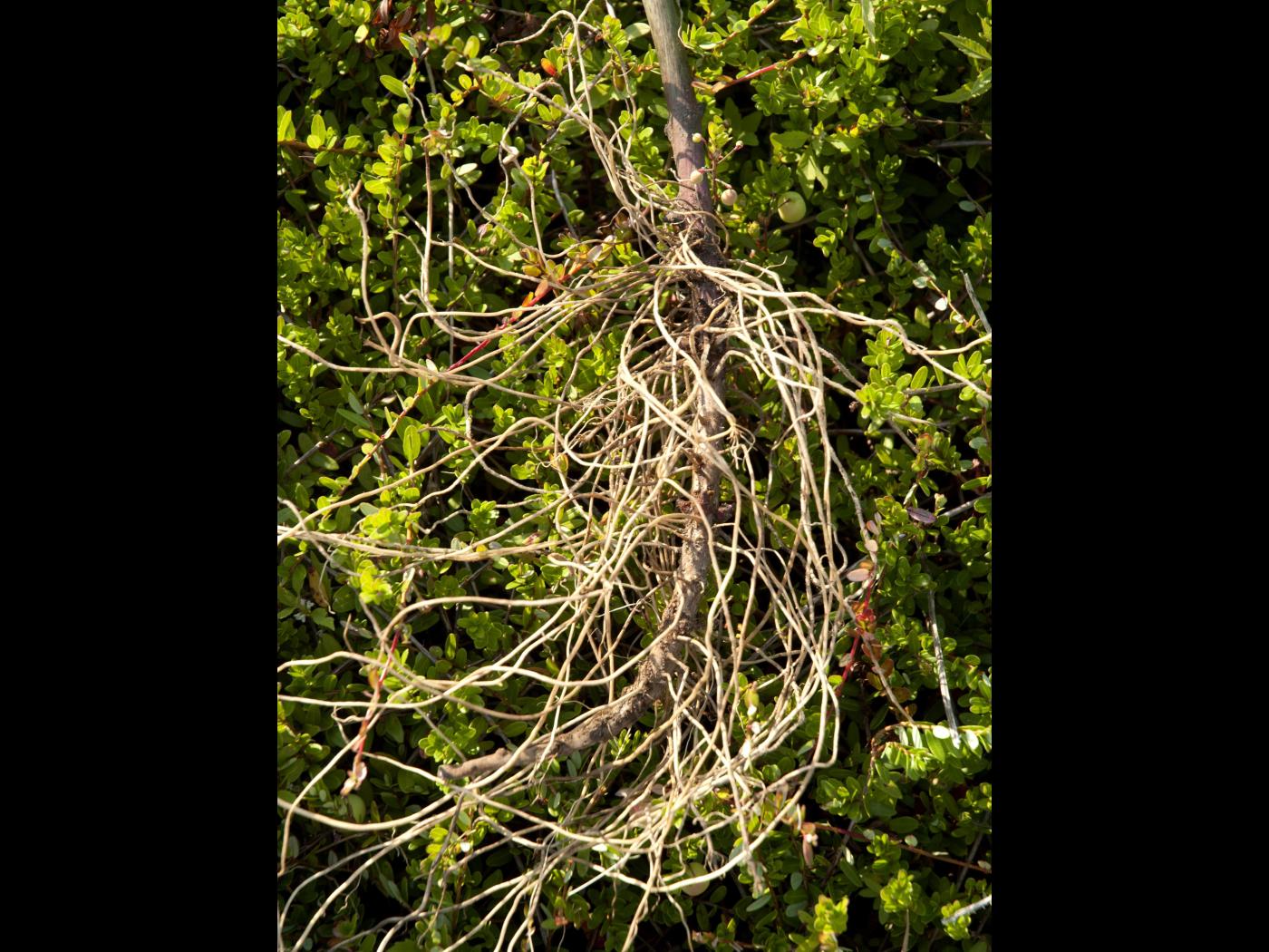 Légende: Plants dans un champ de canneberges