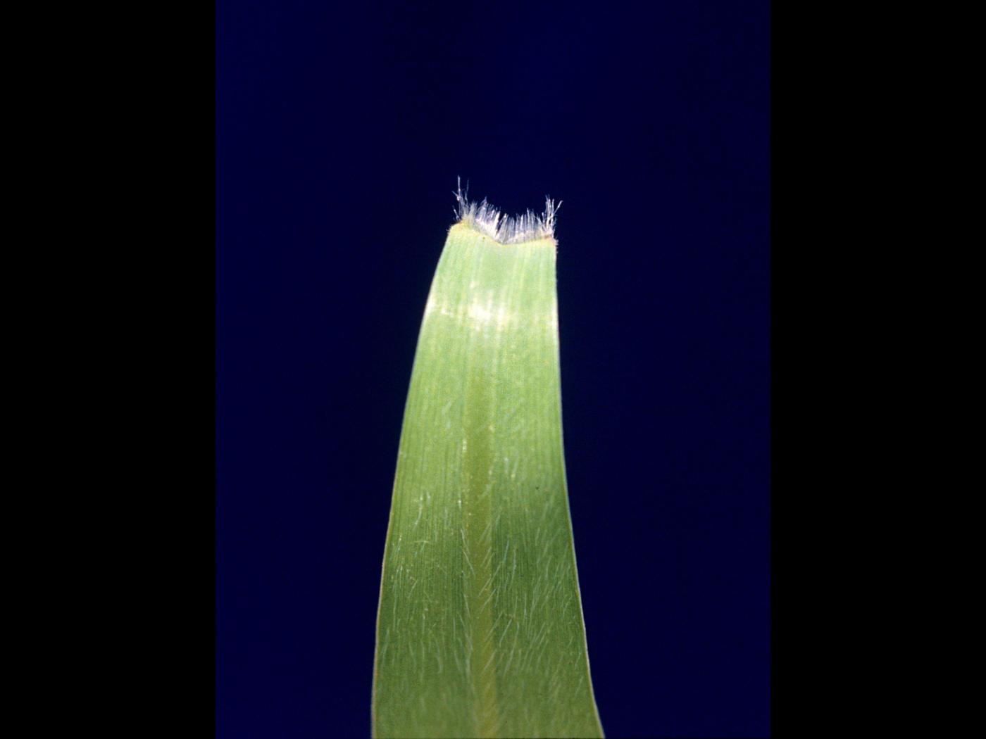 Les feuilles sont étroitement lancéolées et terminées en pointe. Elles mesurent souvent plus de 20 cm de longueur et de 1 à 2 cm de largeur. Le limbe est plat et se rétrécit à sa base, près de la ligule. De nombreux poils courts sont présents sur la face supérieure du limbe, parfois aussi sur la face inférieure. Les marges de la gaine sont munies de poils. La ligule est constituée d’une rangée de poils hérissés d’environ 2 mm de longueur.