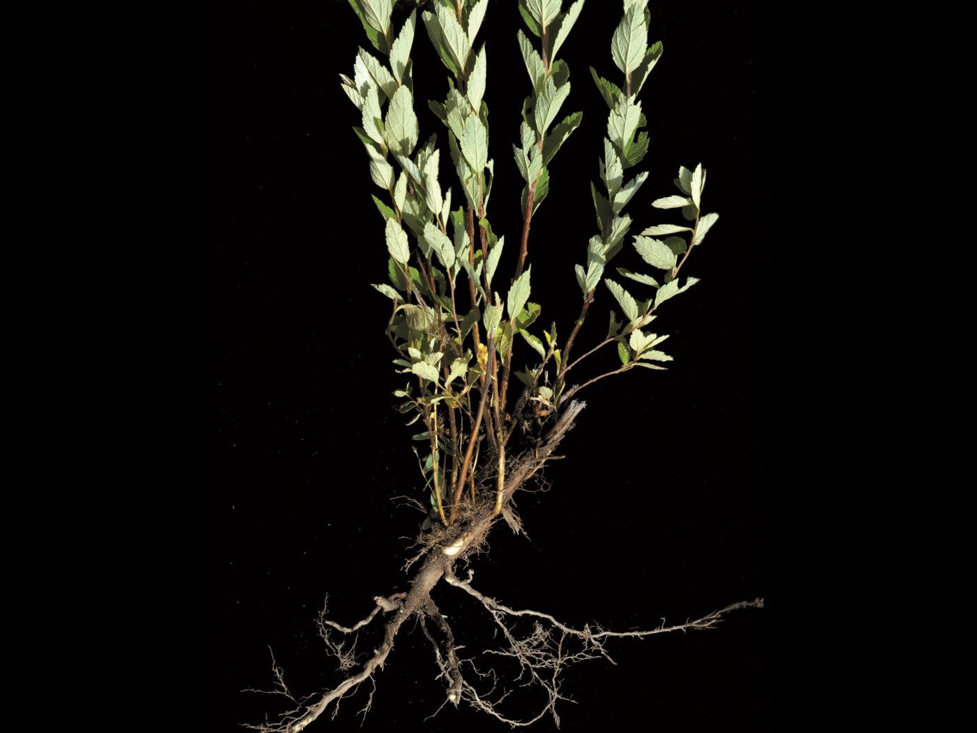 La spirée tomenteuse est un arbrisseau indigène au Québec. La tige est dressée ou ascendante, souvent ramifiée dès la base et mesure moins de 1 m de hauteur. L’écorce est de couleur brun orangé et, lorsque le plant est jeune, elle est tomenteuse. Le système racinaire se compose de rhizomes robustes.