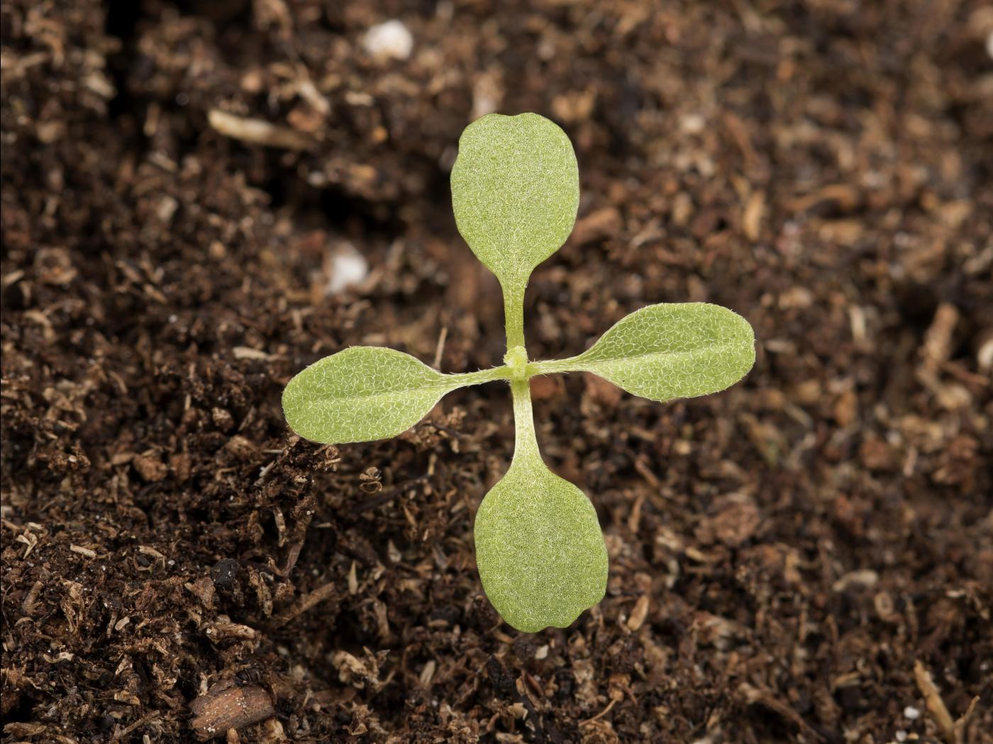 La plantule se compose de feuilles alternes disposées en rosette. Les cotylédons sont oblongs à sommet arrondi et mesurent de 3 à 6 mm de long. Les deux premières feuilles sont entières et opposées, les suivantes sont alternes.