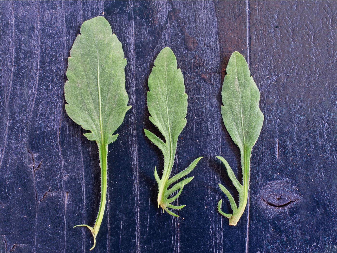 Légende: À gauche : feuille type, à droite et au centre : stipules ressemblant aux feuilles