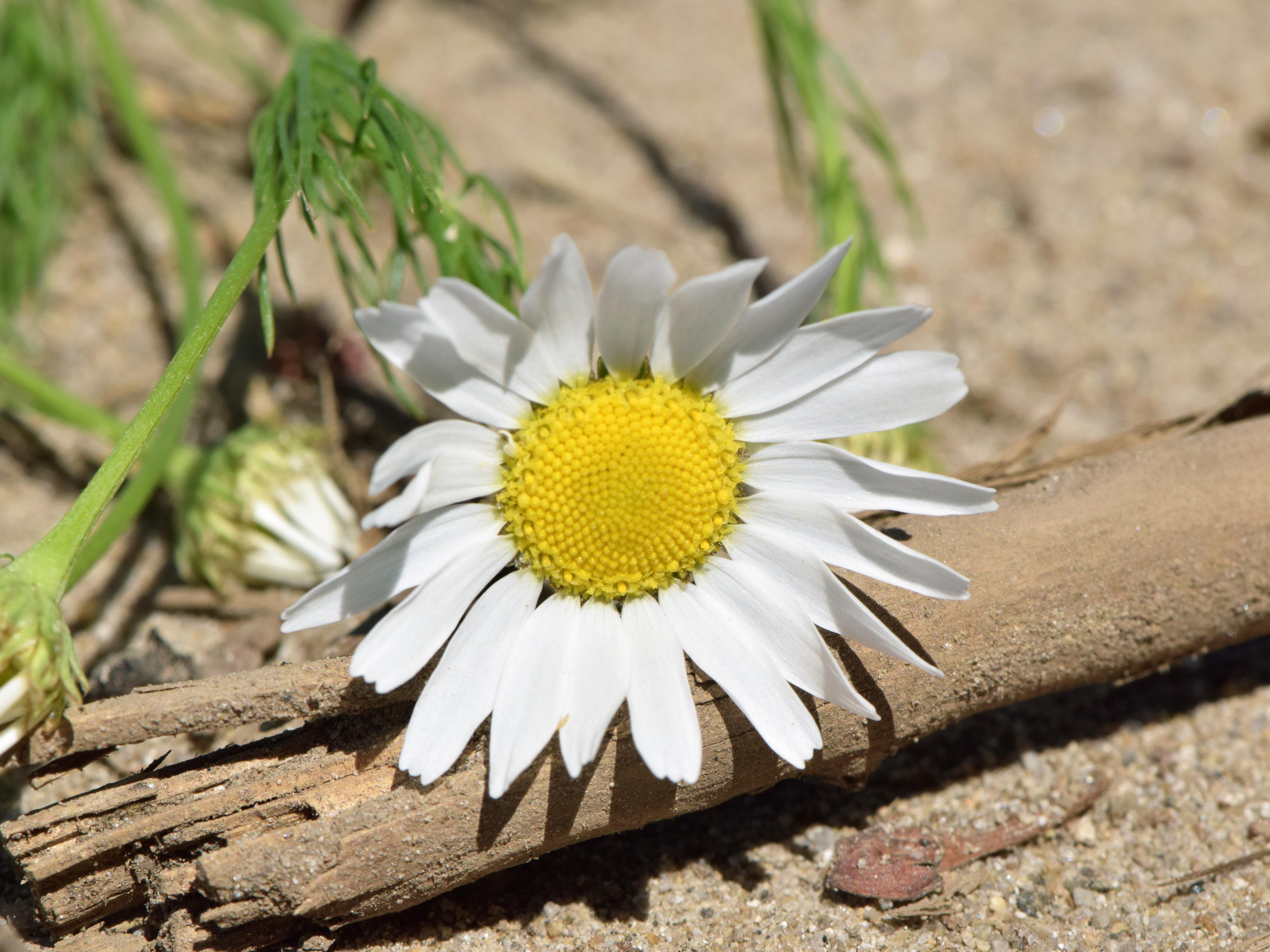 Fleur composée de fleurons ligulés blancs et de fleurons tubulés jaunes