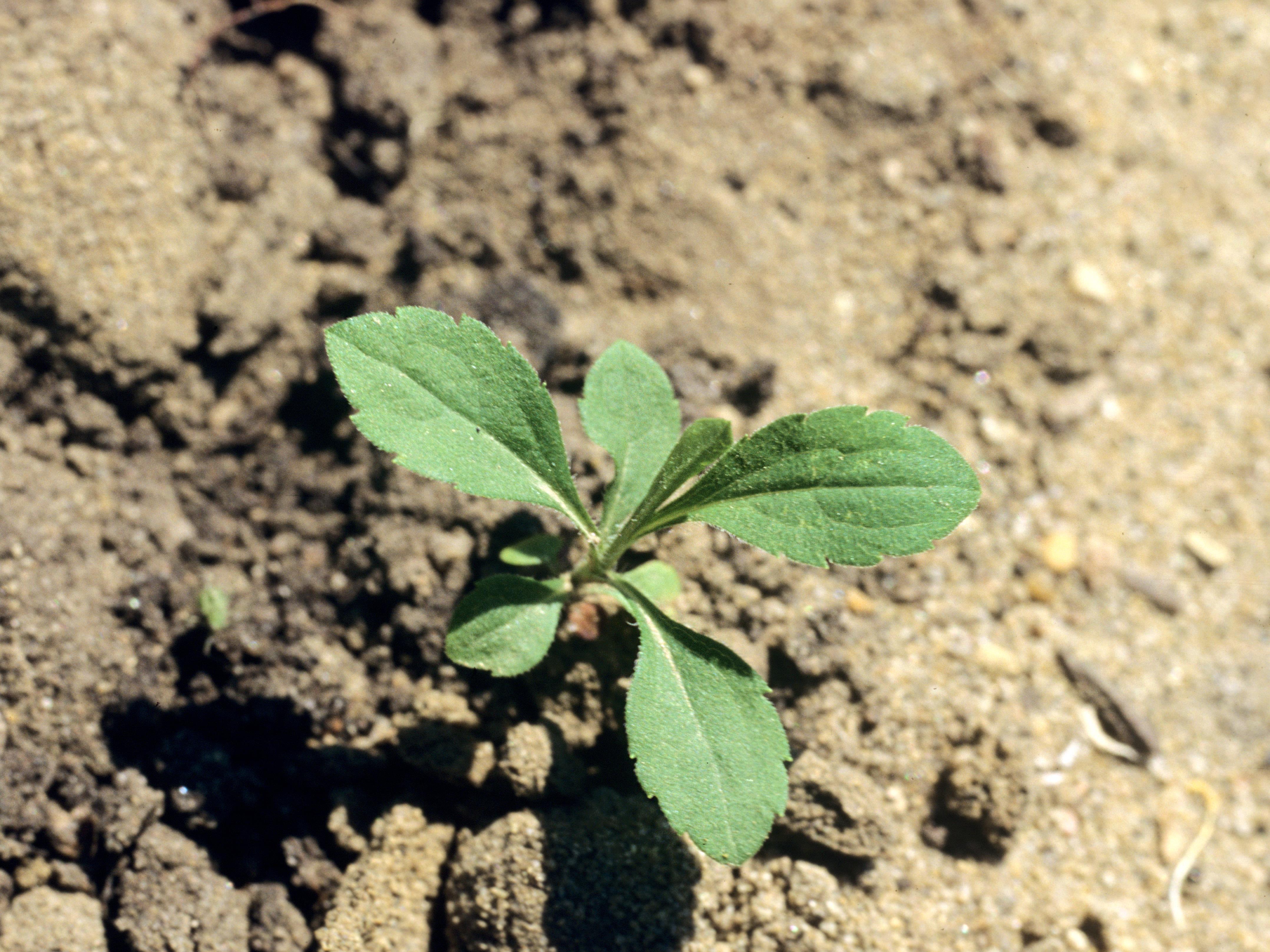 Plantule, stade 6 feuilles, cotylédons oblongs et très petits