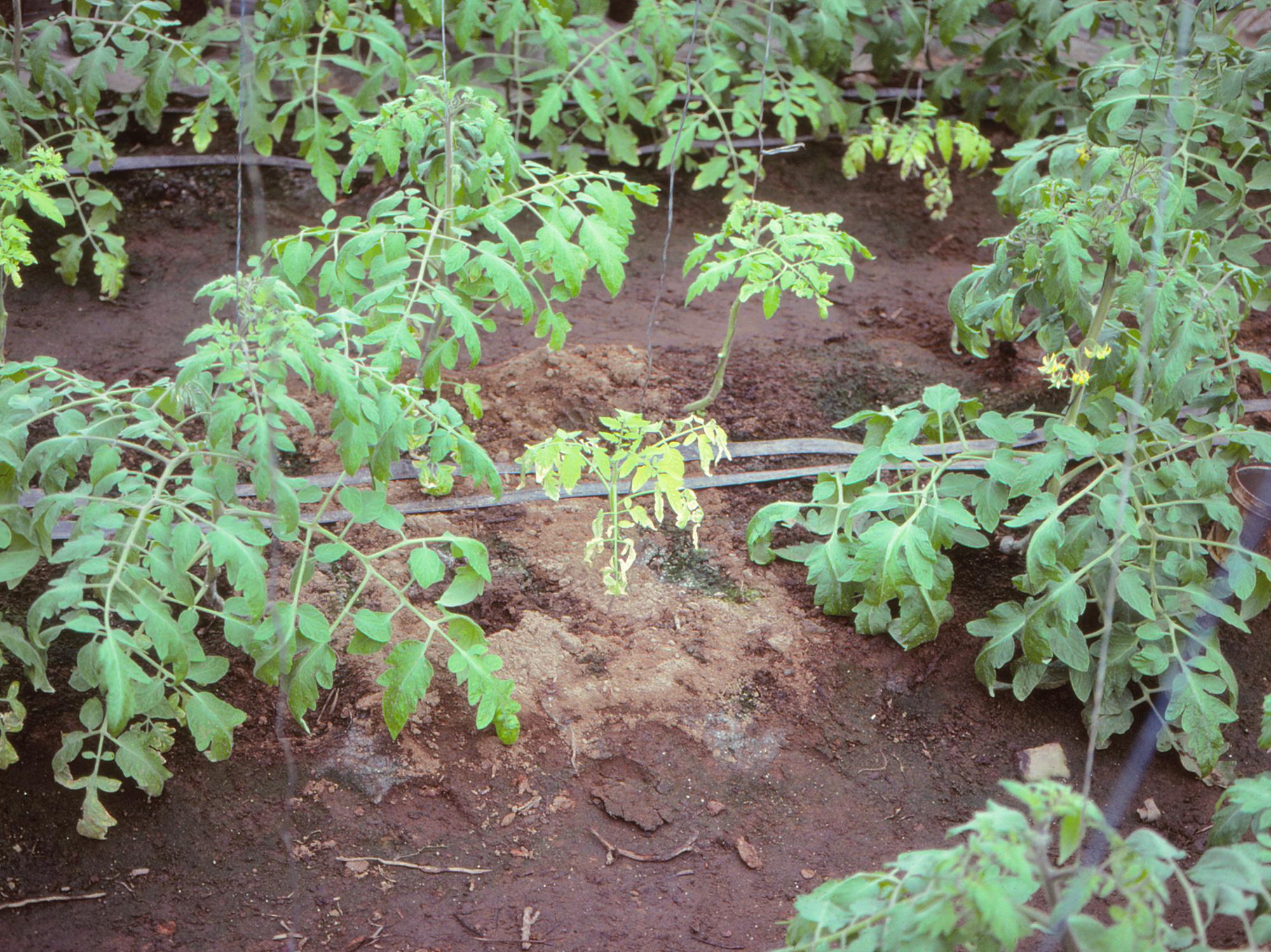 En champ, un plant de tomate a une faible croissance lorsqu'il est comparé aux plants avoisinants. Les tests de laboratoire ont révélé la présence du nématode Meloidogyne sp., responsable de la nodosité des racines.