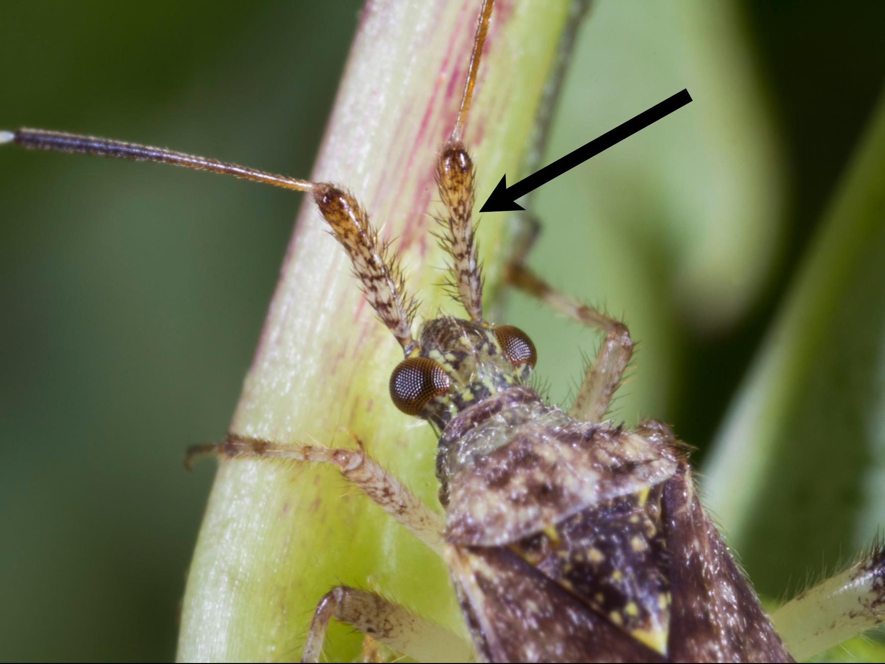 Le premier segment antennaire des représentants du genre Neurocolpus est très épais et est recouvert de gros poils noirs.