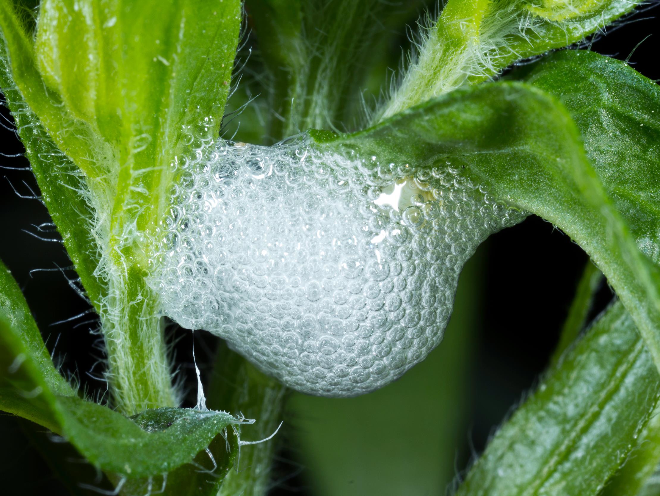 Larve recouverte de sa masse d'écume