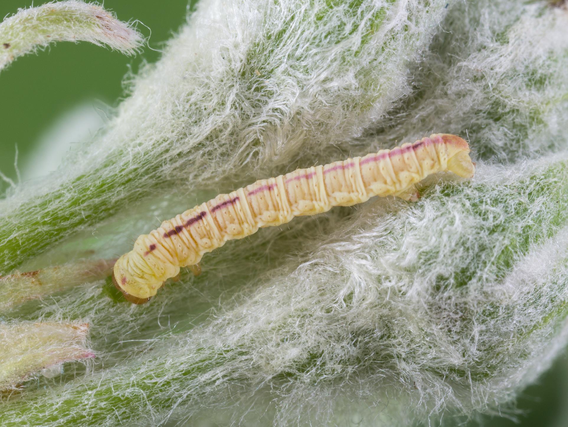 Jeune larve sur un bouton floral