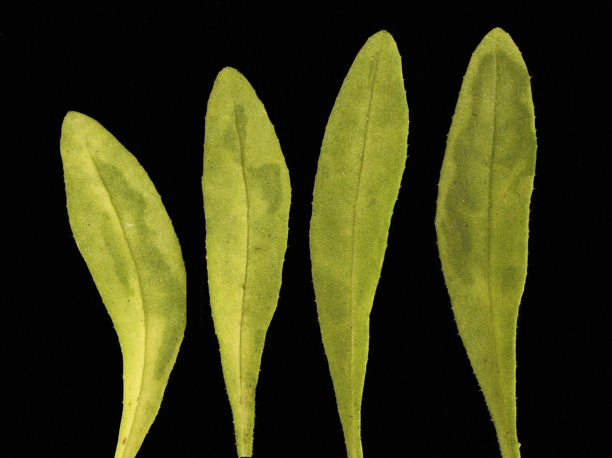 Les feuilles de calibrachoa présentent une mosaïque constituée de plages irrégulières jaunes à vert pâle. Les tests de laboratoire ont révélé la présence d’un complexe viral constitué du virus de la mosaïque de la tomate (ToMV) et du virus de la mosaïque du tabac (TMV). Notez que le ToMV a été observé en plus grande quantité que le TMV.