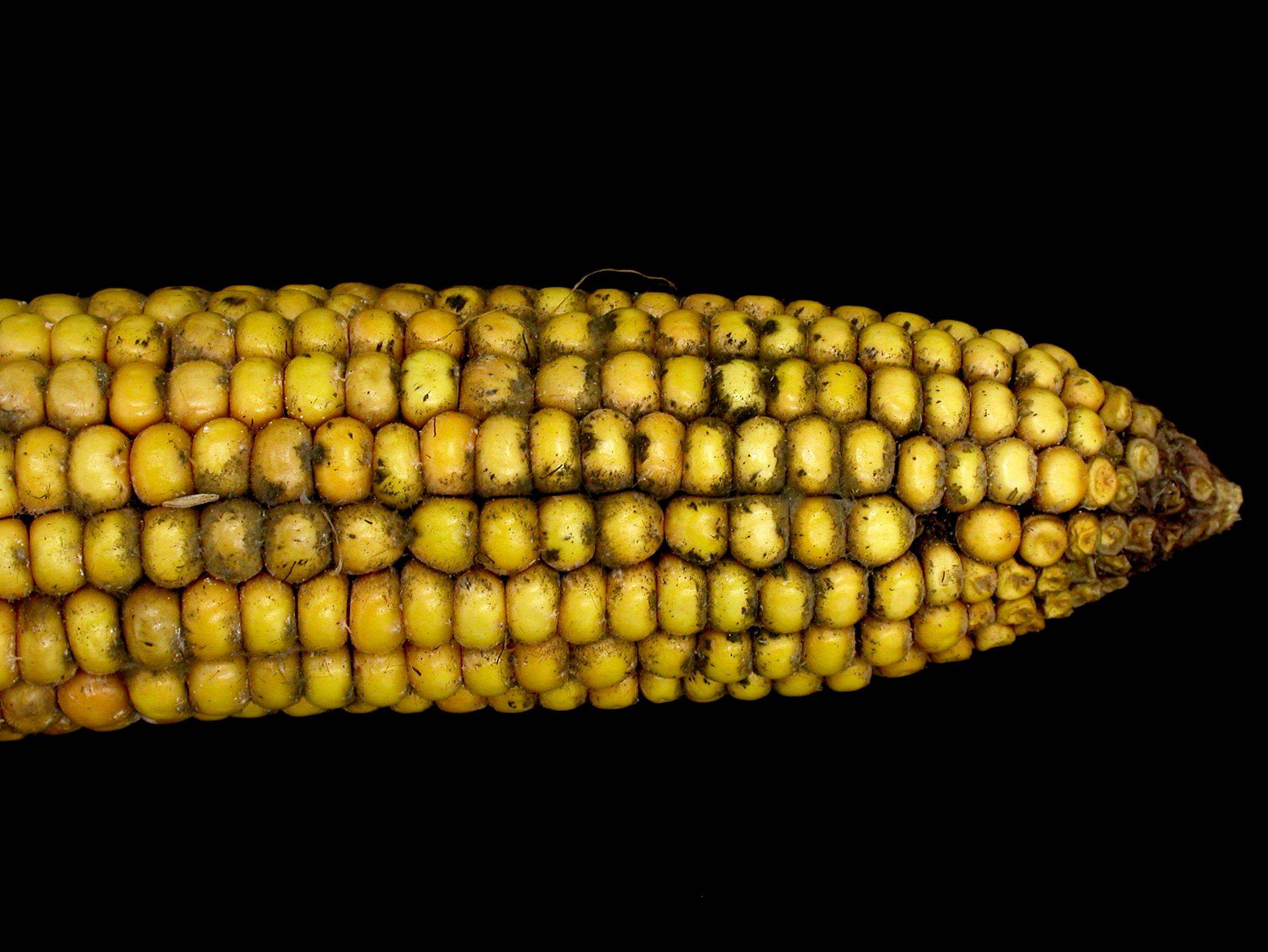 Sur un épi de maïs grain et fourrager, présence d’une moisissure noire à la surface et entre les grains. Les tests de laboratoire ont révélé la présence du champignon Cladosporium sp., responsable de la moisissure noire du maïs.