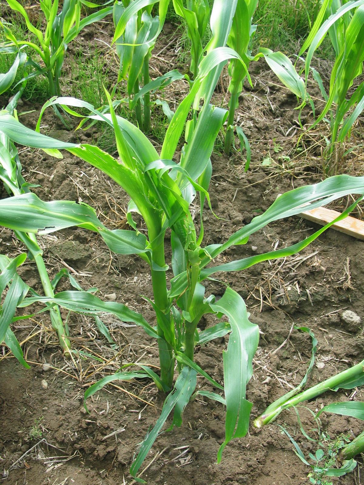 Le limbe de certaines feuilles de maïs grain et fourrager s’est déchiré sous l’impact de la grêle. Tous les niveaux de feuilles ont été touchés puisque les plants sont encore petits, ce qui a permis à la grêle d’atteindre le sol. Sur ce plant, le méristème apical, qui est une zone de division cellulaire active, a été affecté ce qui nuira au développement de la plante.