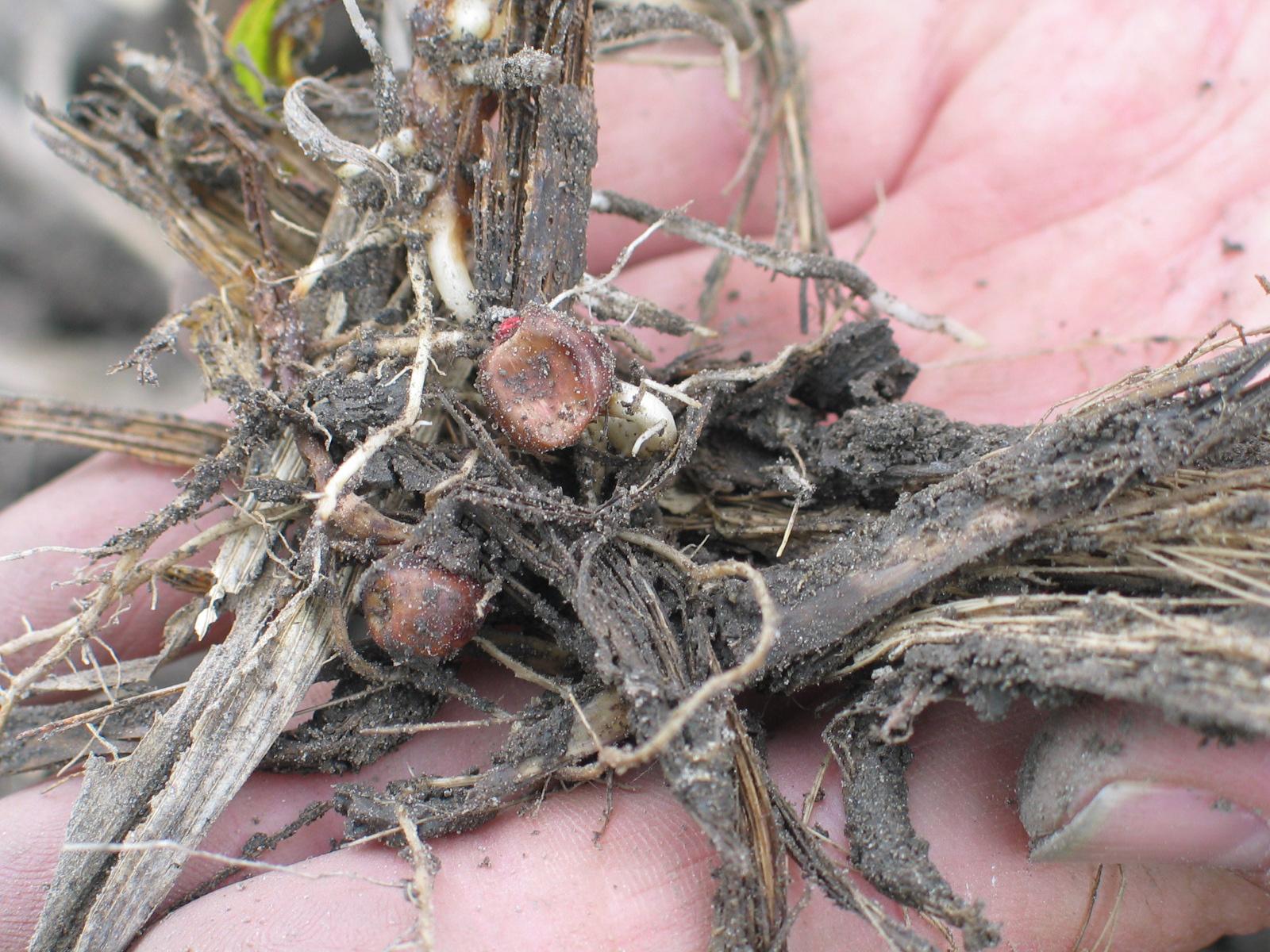 Faible développement des racines de maïs grain et fourrager dans des résidus de culture