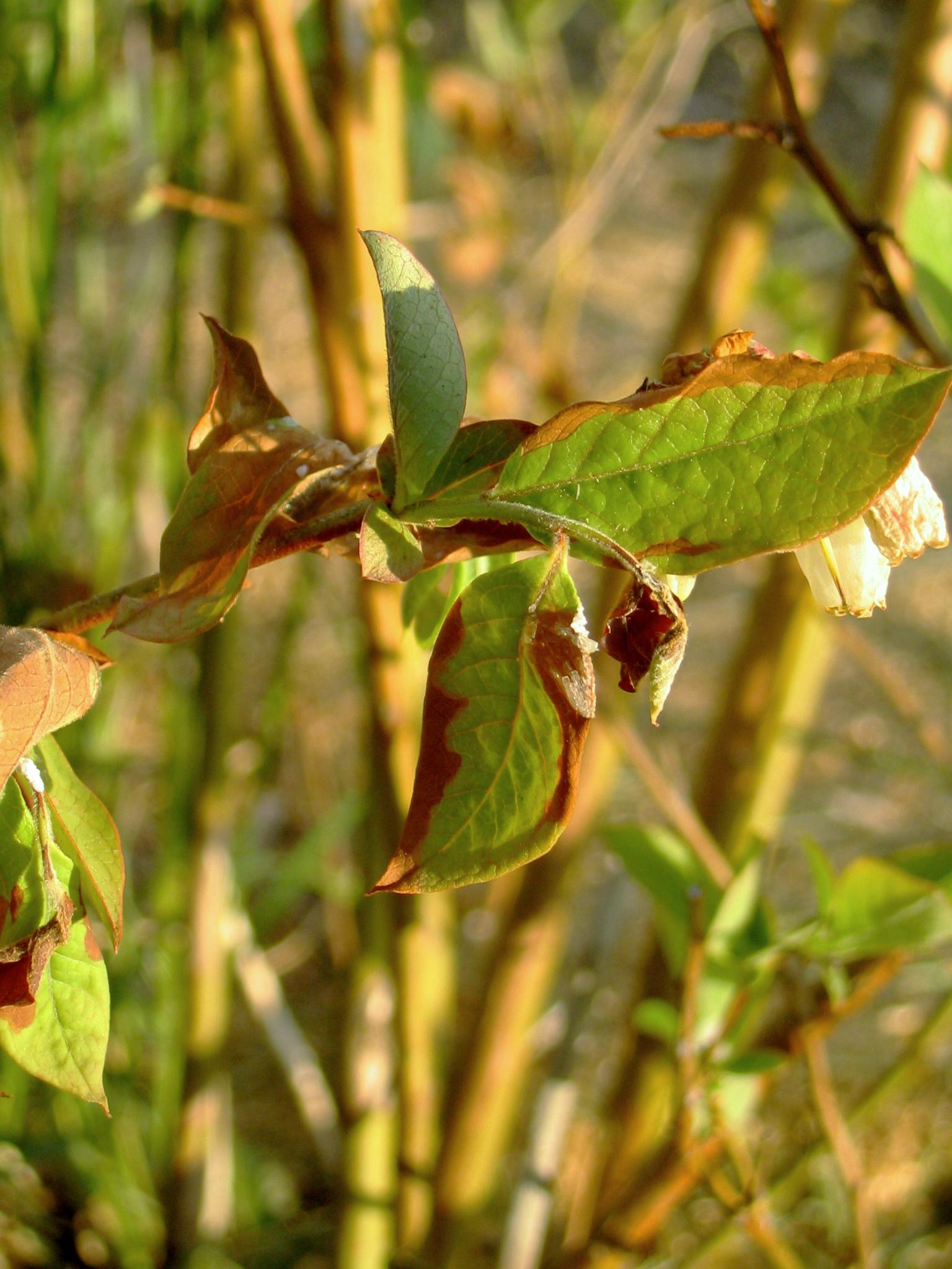 Brûlure marginale sur feuilles de bleuet en corymbe