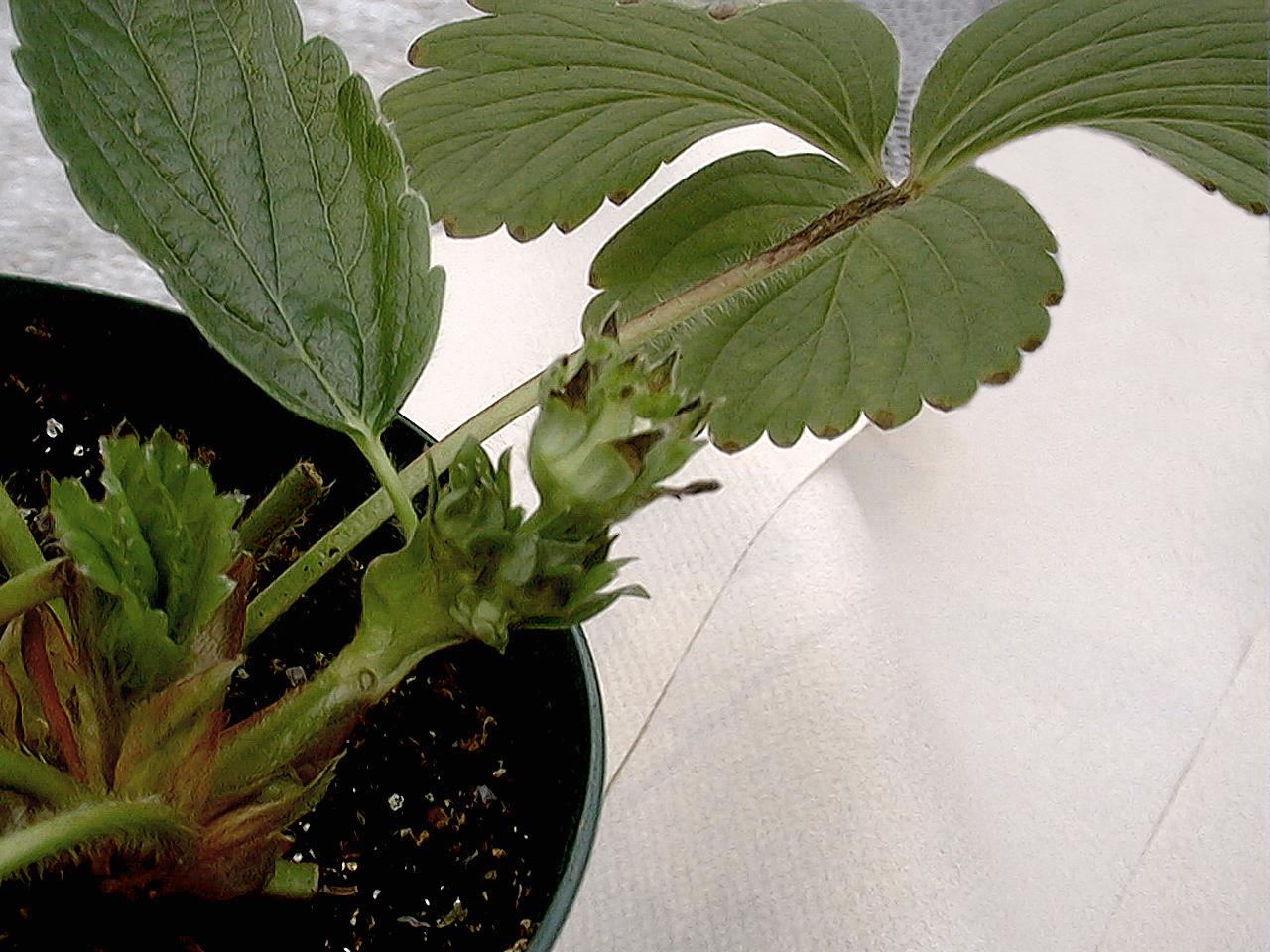 Brunissement des sépales, du pétiole et de la marge des feuilles de fraisier