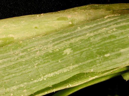 Stries longitudinales blanchâtres sur feuille d’oignon