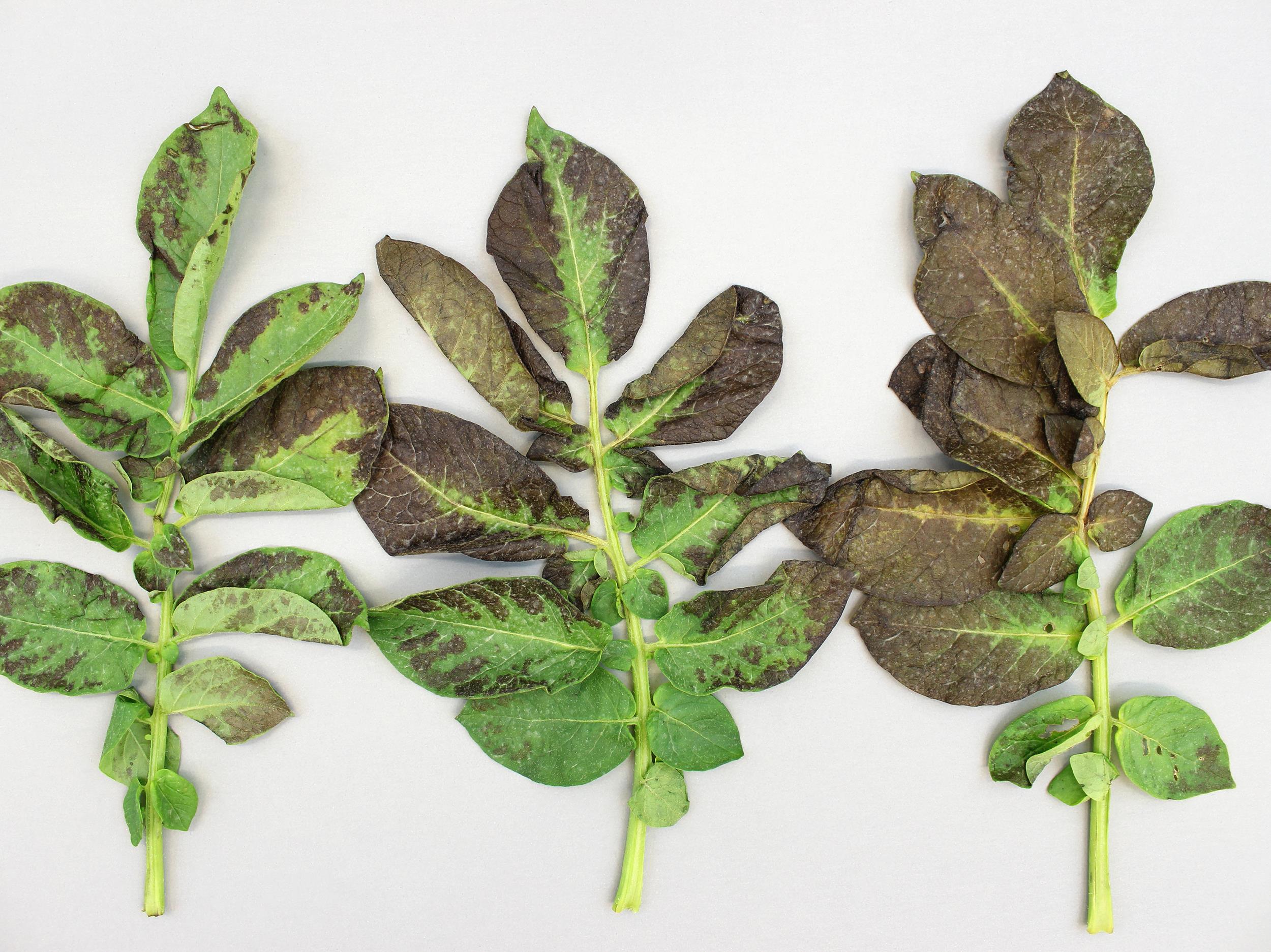Brunissement des folioles sur feuilles de pomme de terre
