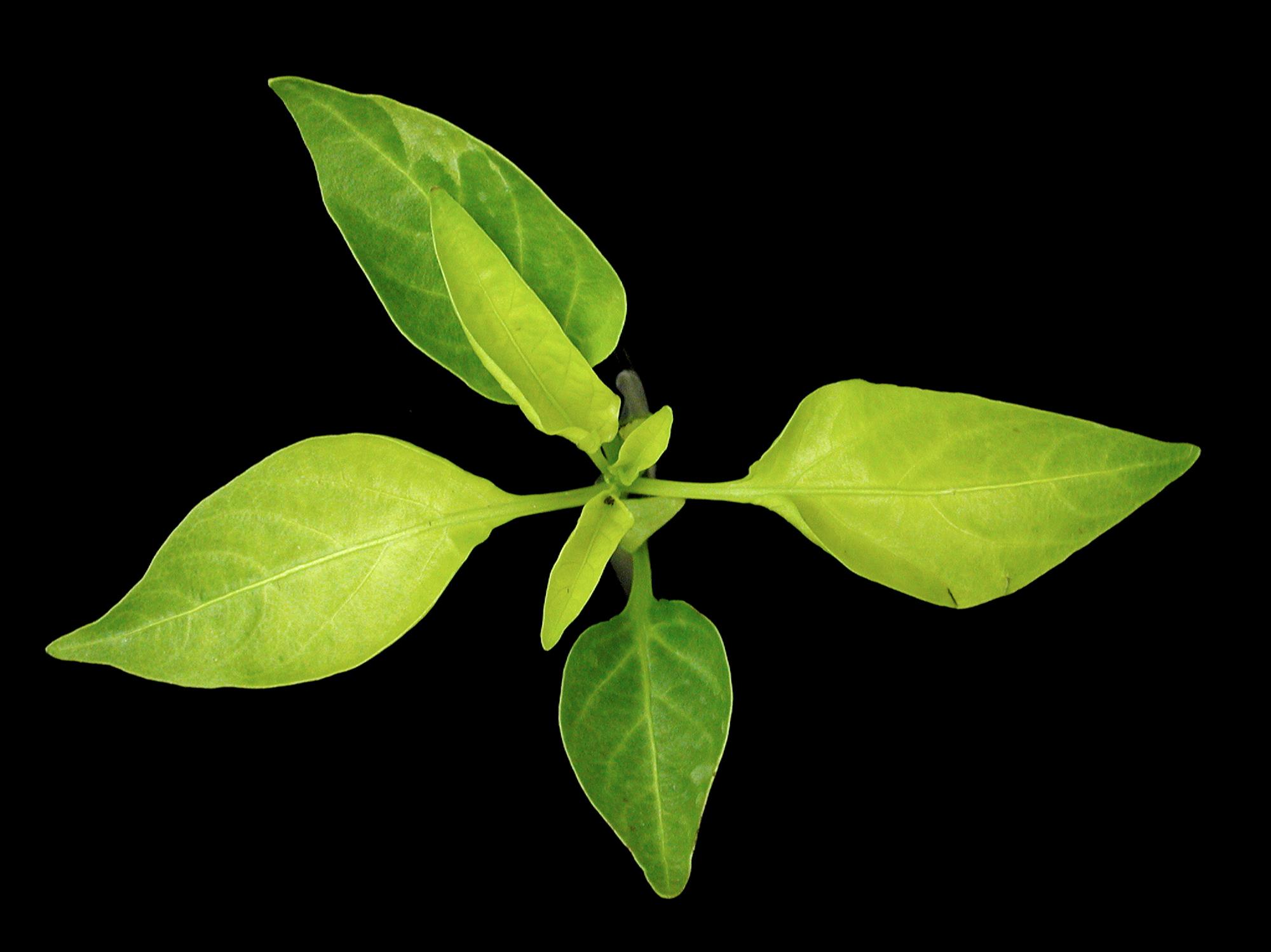 Sur un jeune plant de poivron de serre (stade 5 à 6 feuilles), les feuilles terminales et médianes présentent un jaunissement prononcé. Le jaunissement débute à la base du limbe et affecte même les nervures. Les jeunes feuilles sont les plus affectées. Ce dommage serait la conséquence d’une carence en fer.