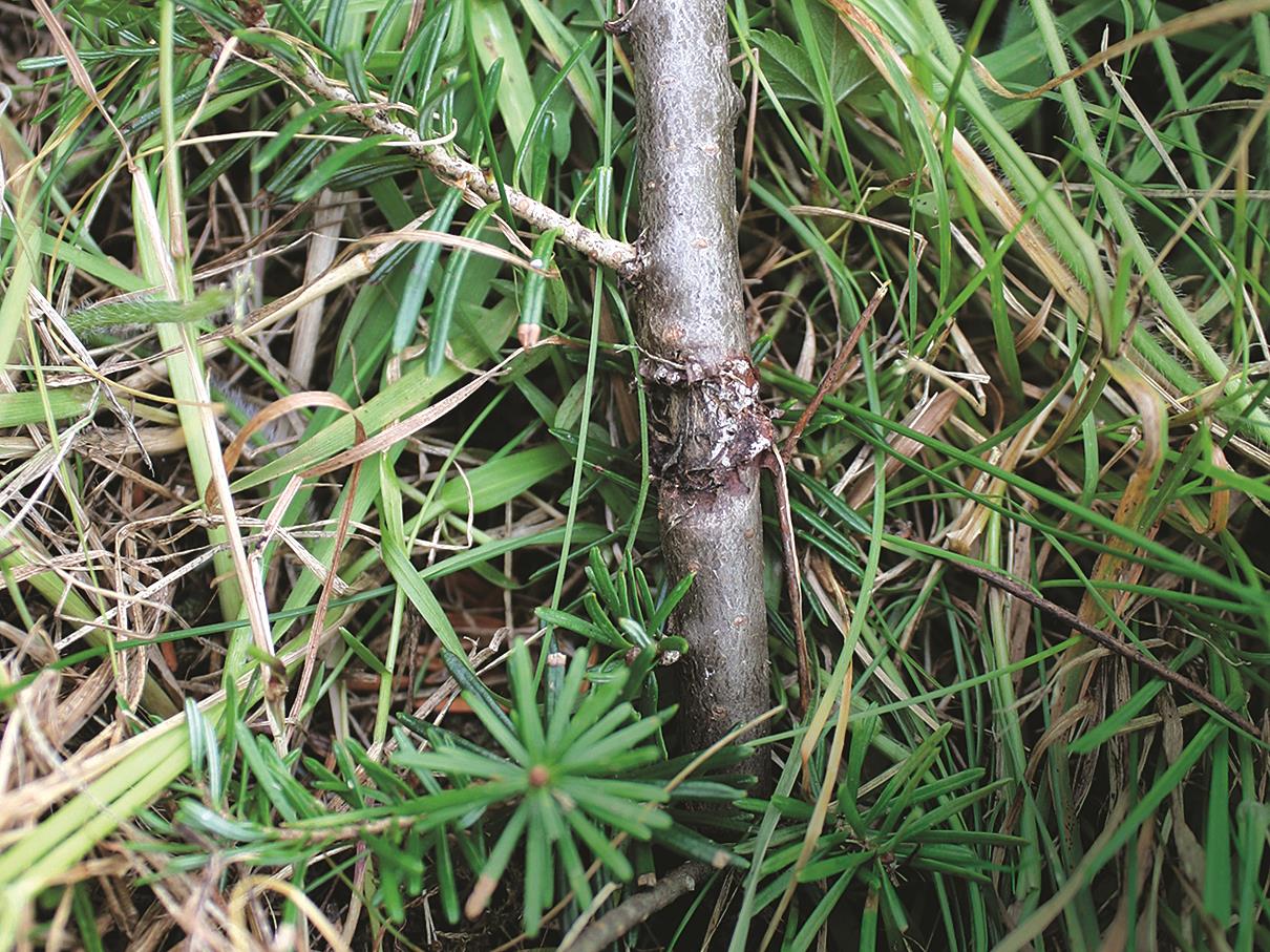 Blessure au niveau du collet de l'arbre occasionné par le fauchage.