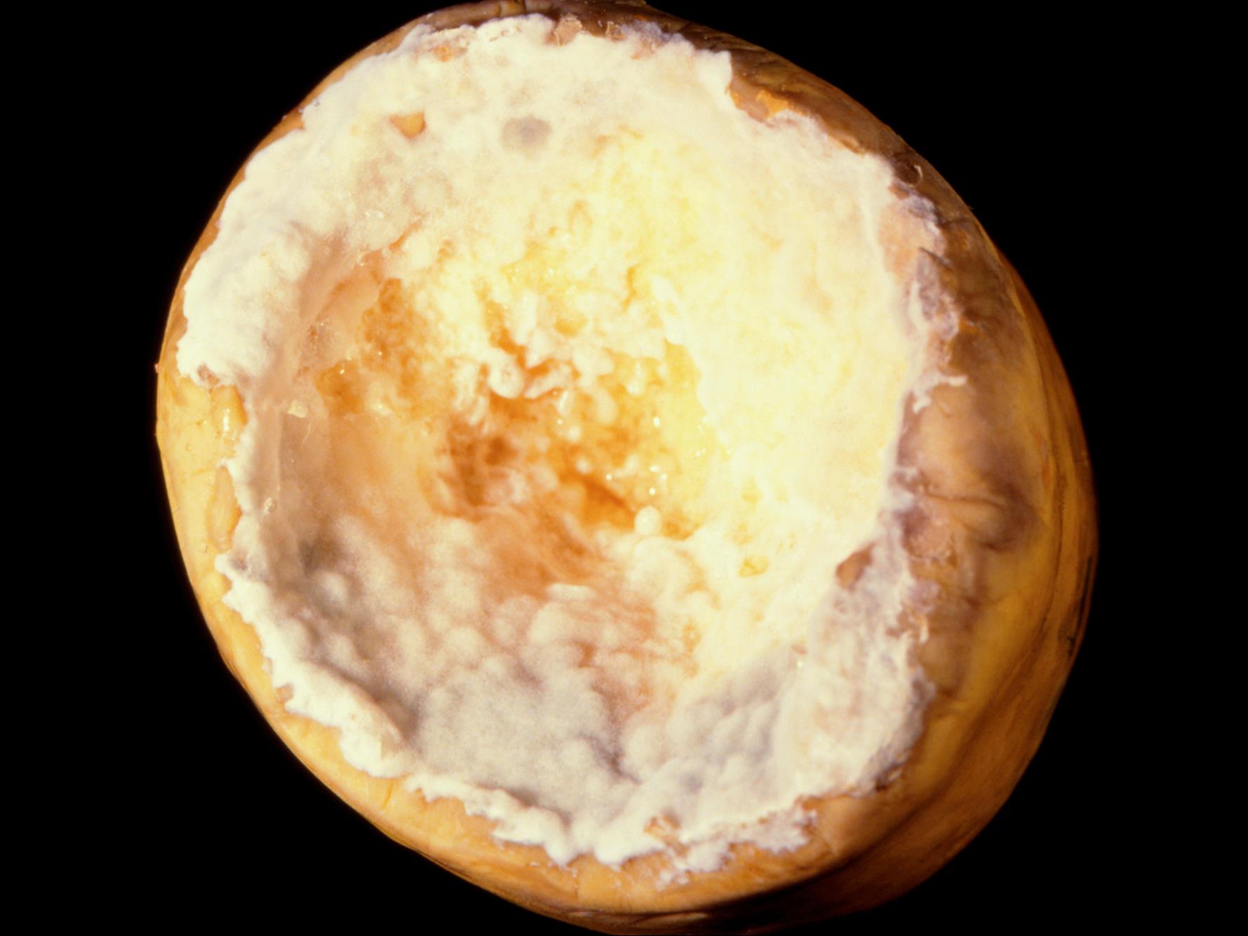 Pourriture et mycélium blanc sur courge musquée