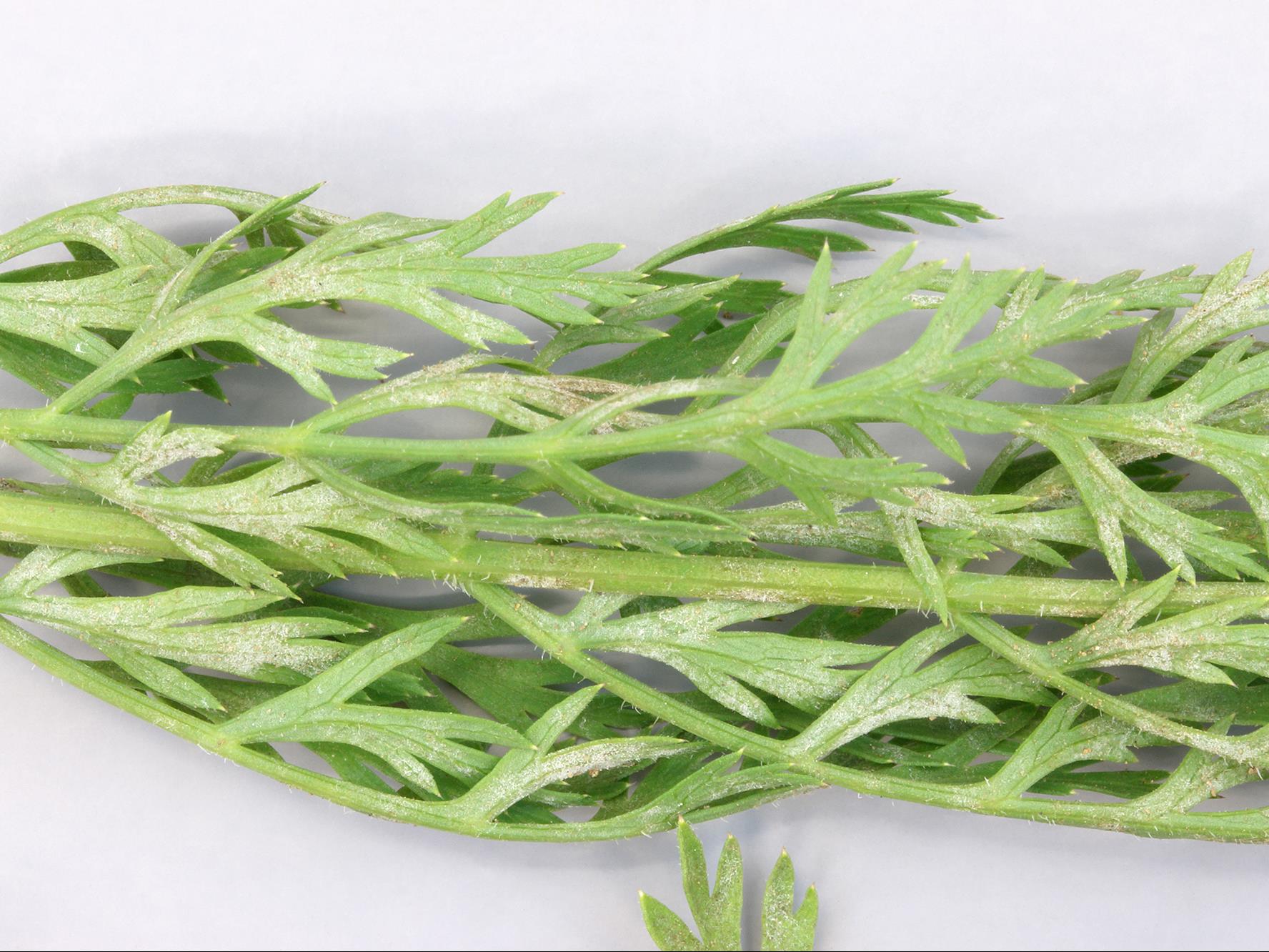 Mycélium blanc sur feuille de carotte