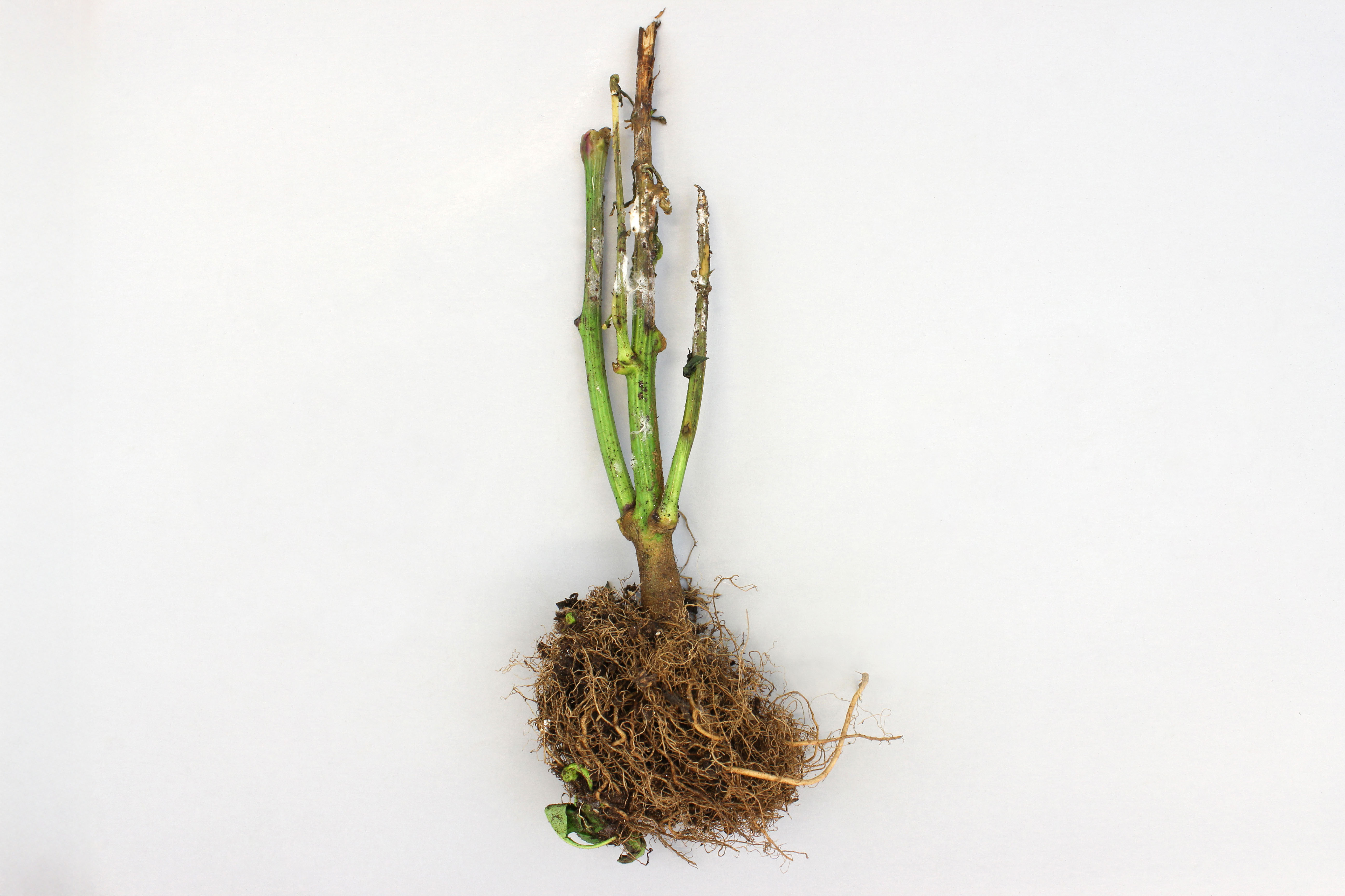 Pourriture et mycélium blanc sur tiges de poivron
