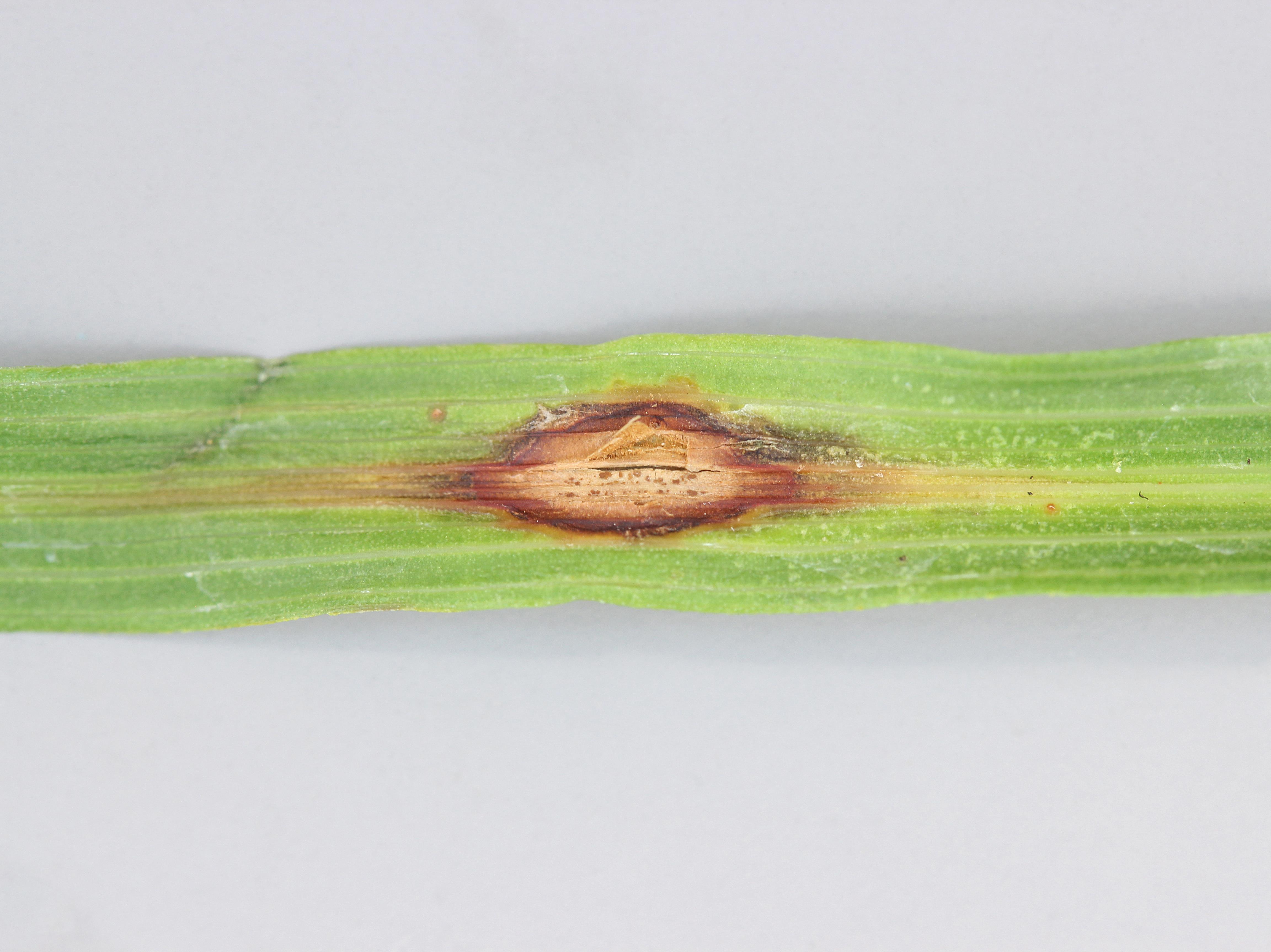 Une feuille de dracéna montre des taches elliptiques beiges avec une marge foncée. Un halo jaune est présent. Des fructifications noires apparaissent sur l’épiderme sous la forme de petits points. Les tests de laboratoire ont révélé la présence du champignon Colletotrichum sp., responsable de l’anthracnose. Quelques espèces de Colletotrichum sont rapportées chez le dracéna dont C. gloeosporioides et C. dracenanophilum.