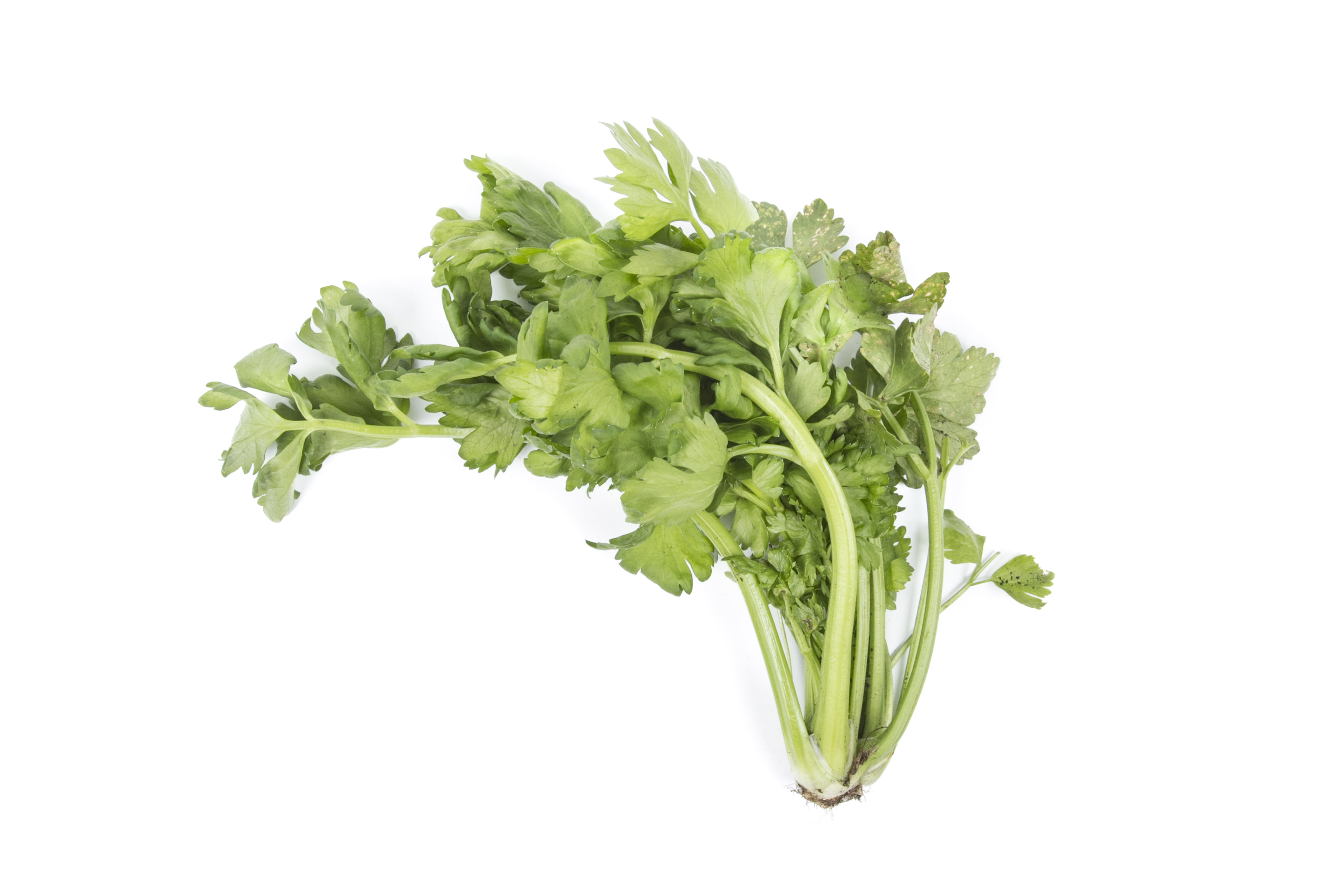 Un plant de céleri montre une déformation sévère et un enroulement des feuilles. Le feuillage est jaune et gaufré et des taches beiges sont observées sur les feuilles extérieures. Les tests de laboratoire ont révélé la présence du champignon Colletotrichum sp., responsable de l’anthracnose chez le céleri. Il s’agit probablement de C. acutatum.