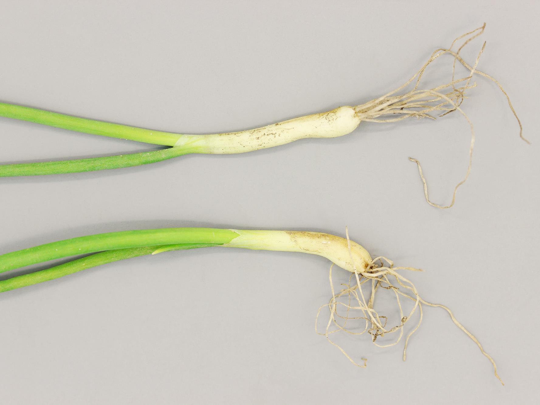 Malformation de jeunes plants d'oignons secs