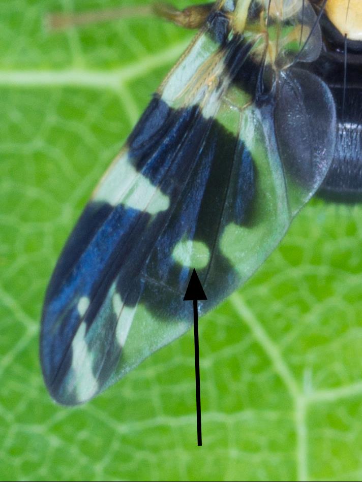 Toutes les espèces de mouches appartenant au genre Rhagoletis possèdent un motif sombre de forme variable sur les ailes. Rhagoletis fausta est cependant la seule qui possède une tache hyaline arrondie dans
