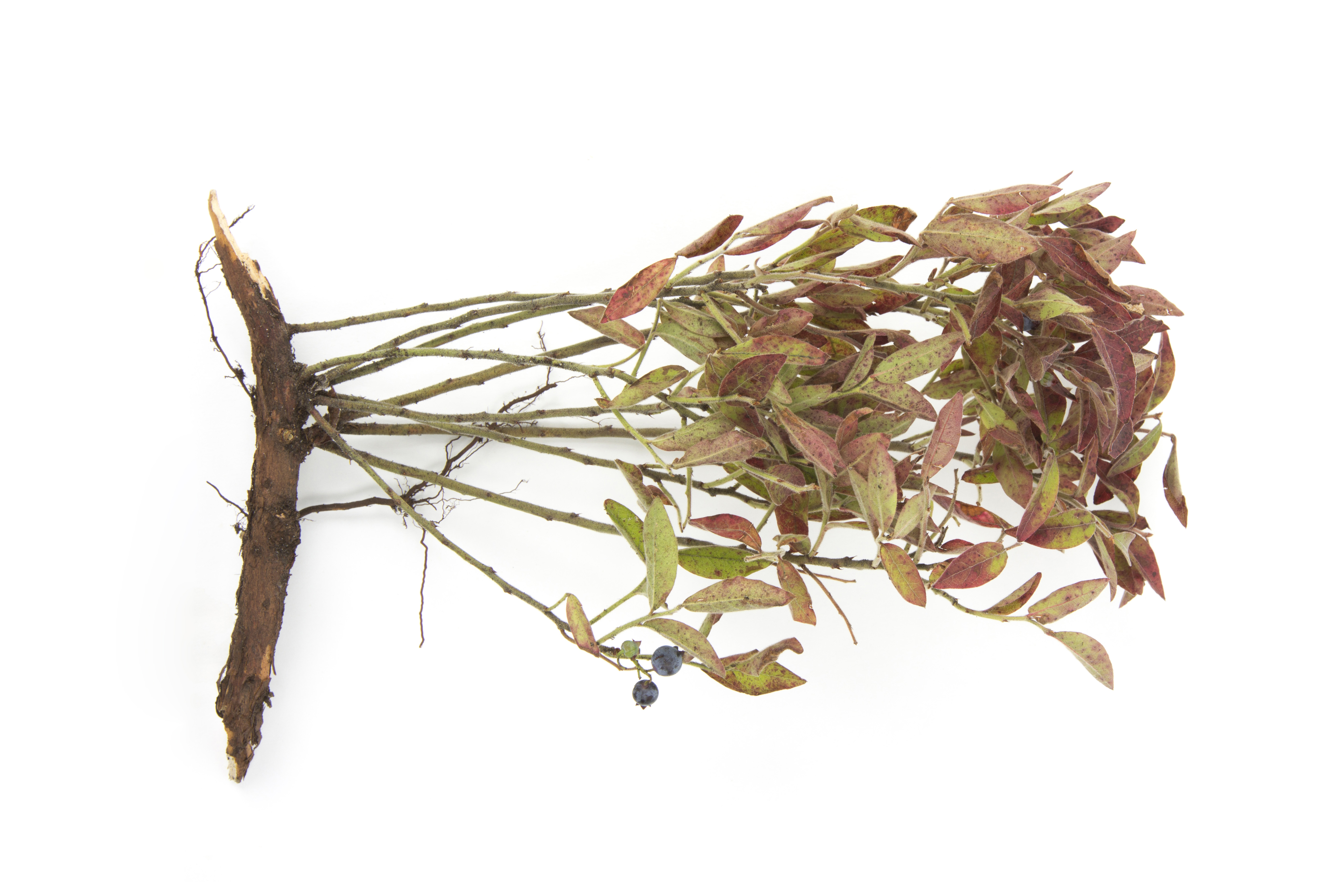 Les feuilles de ce bleuetier nain sont recouvertes de taches rouges à brunes, qui sont visibles sur les deux faces du limbe (supérieure et inférieure). La majorité des feuilles présente aussi une coloration rouge à mauve. Les tests de laboratoire ont permis d’identifier Septoria sp., le champignon responsable de la tache septorienne chez le bleuetier nain.