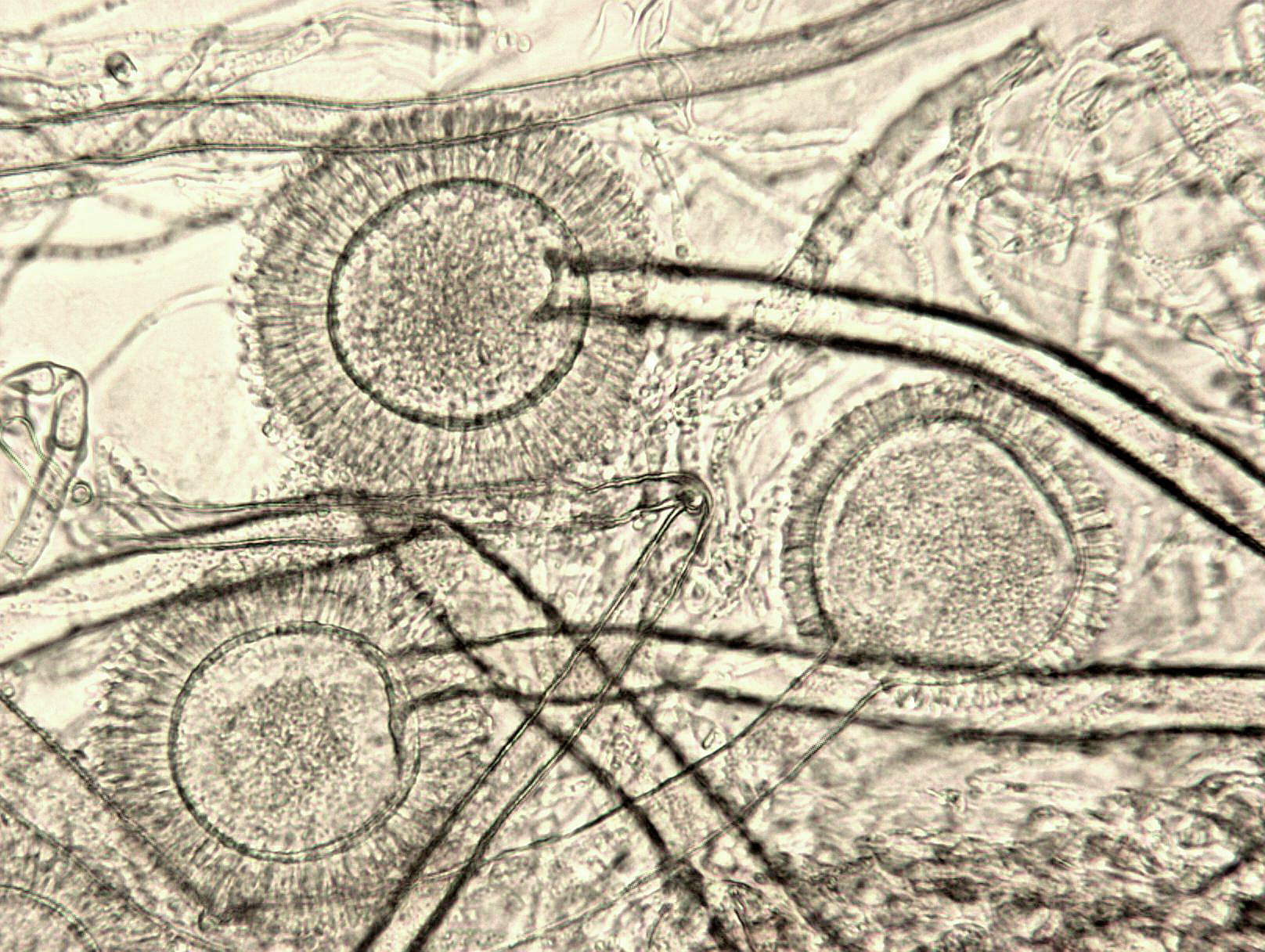 Têtes conidiennes et conidiophores d'Aspergillus sp.