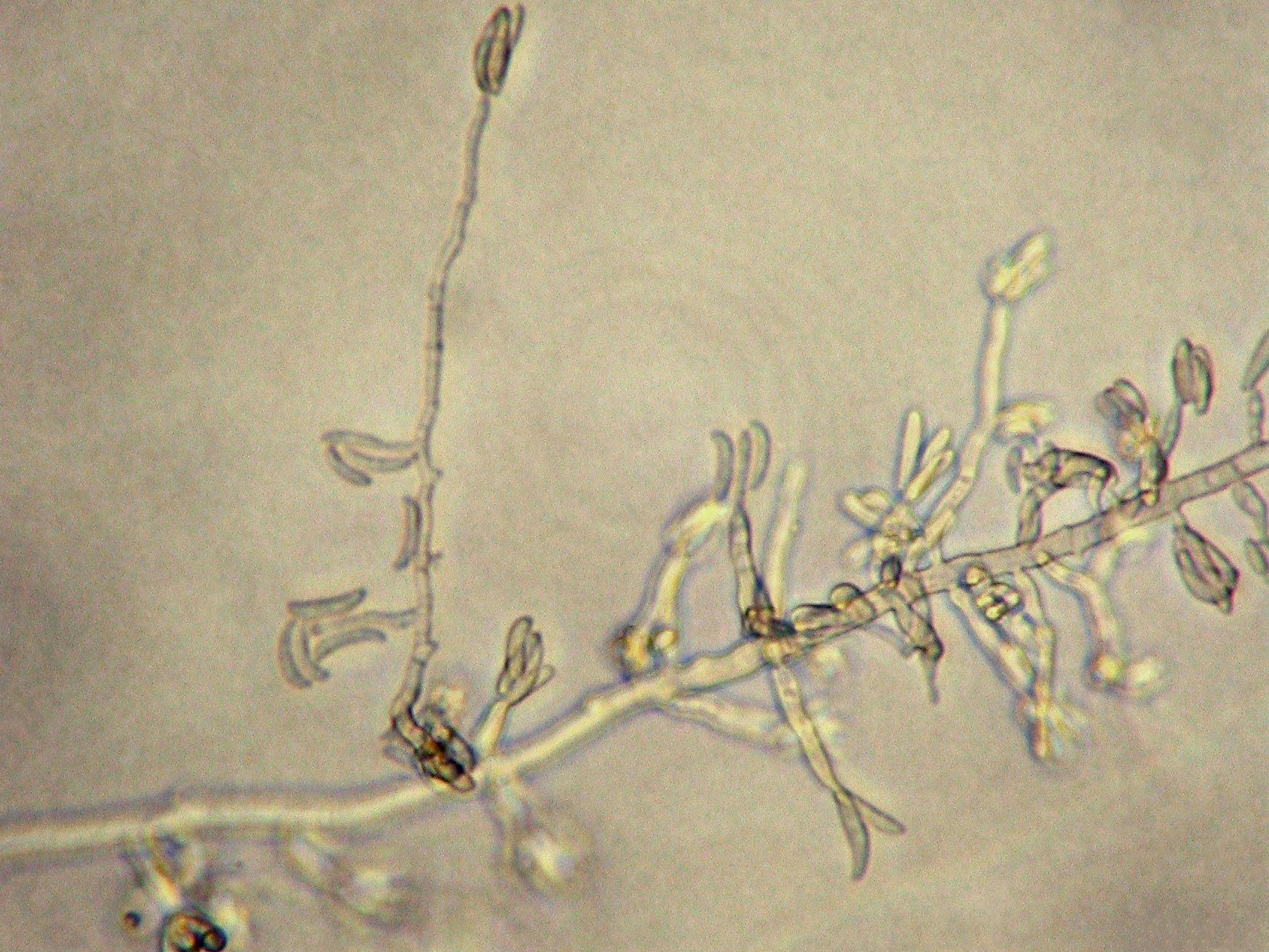 Microconidies de Fusarium oxysporum en "fausse tête", sur monophialide solitaire
