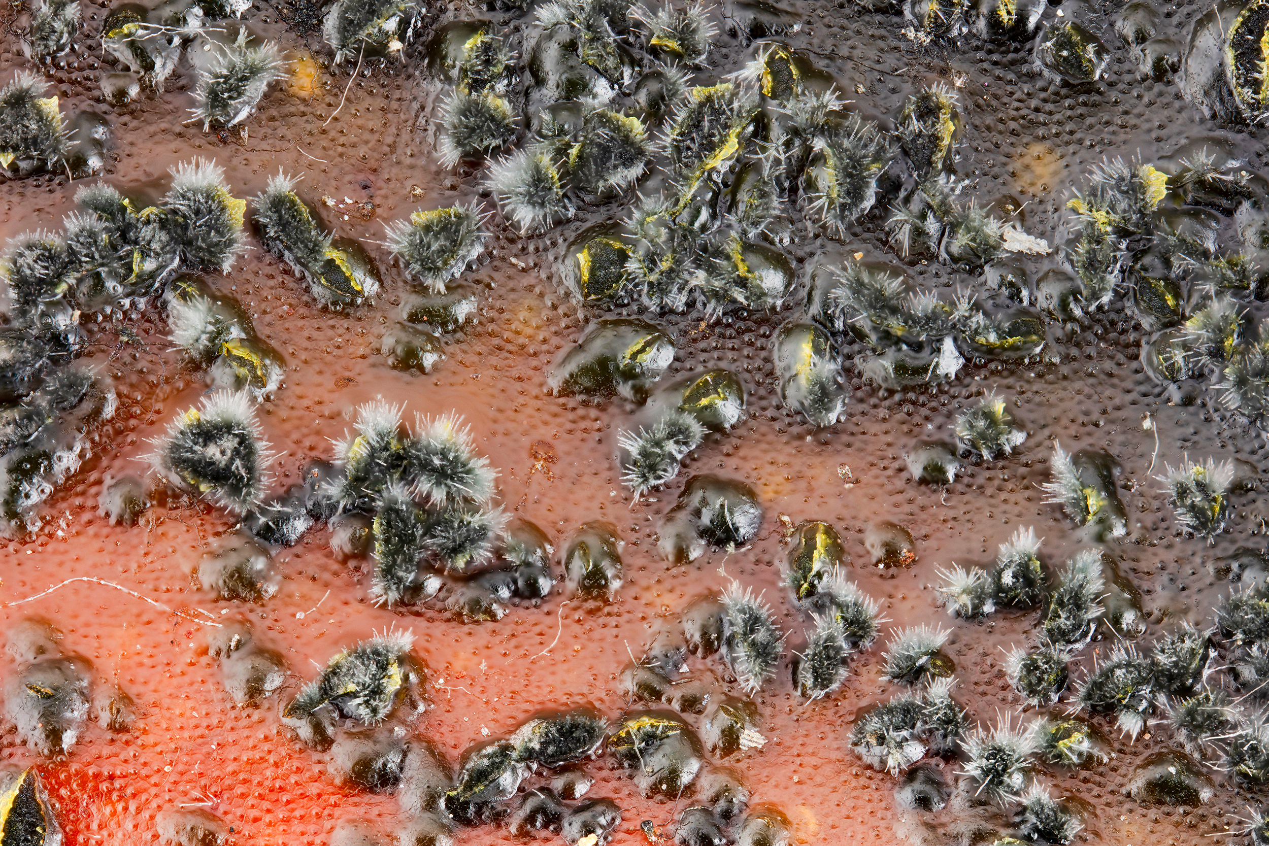 Acervules maturent de Colletotrichum du groupe acutatum sur un fruit de tomate.