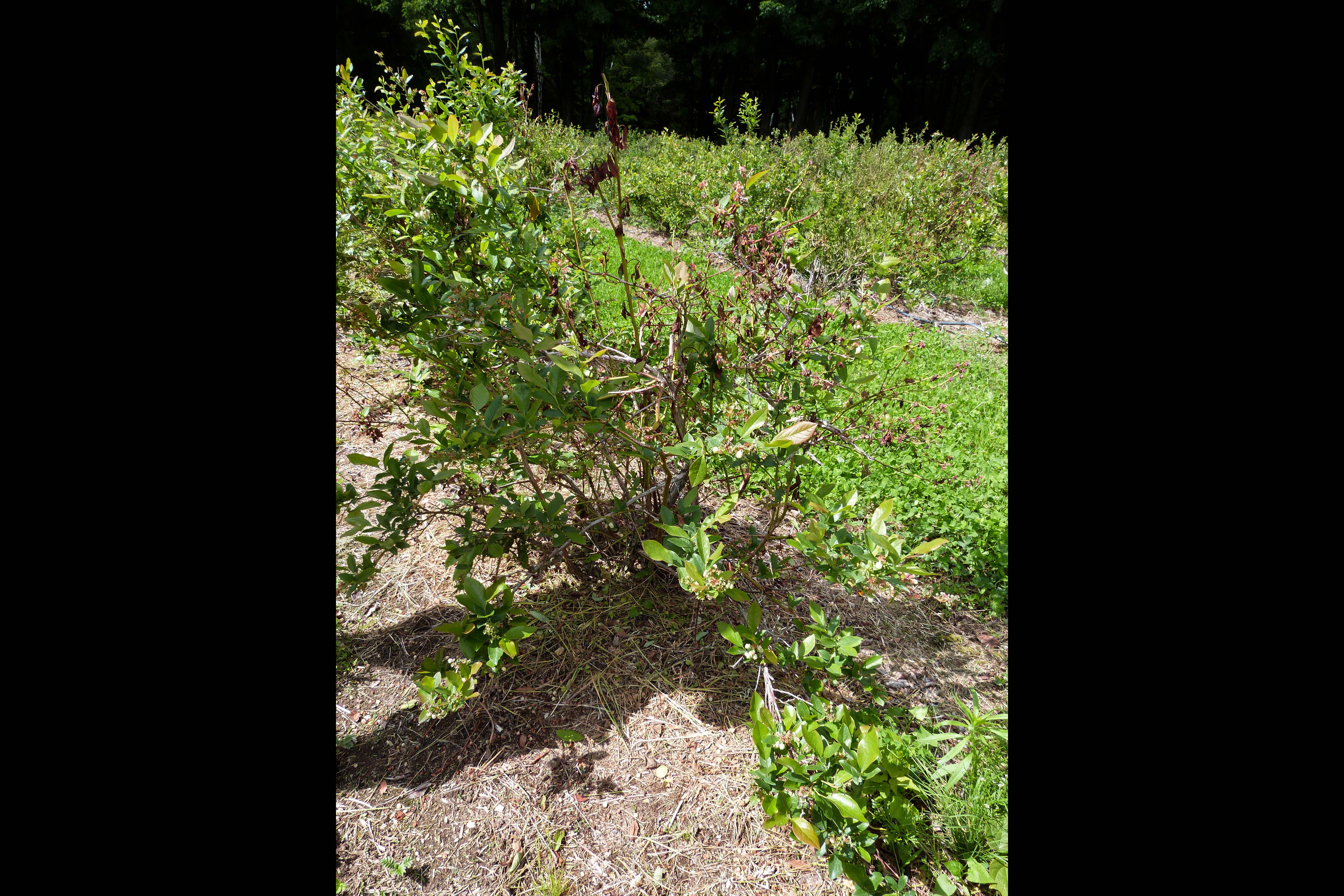 Symptôme du virus du choc du bleuet (BlShV) sur bleuetier en corymbe