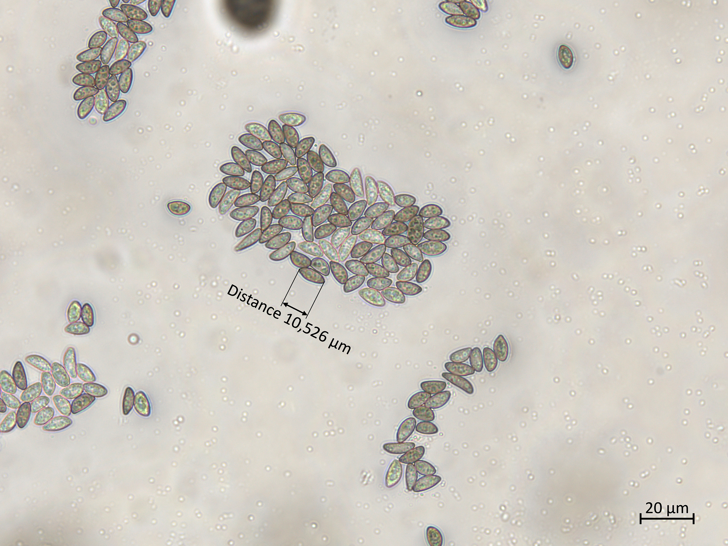 Dimension de conidies de Coniella diplodiella.