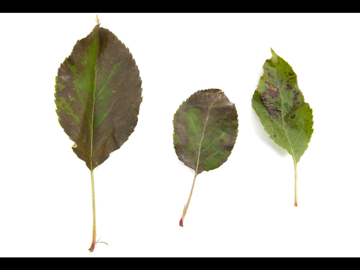 Description: Des feuilles de pommier du cv Royal Gala montrent des taches rougeâtres devenant brun foncé, réparties aléatoirement sur le limbe ou à la marge, de forme et de grosseur variables et suivant quelques fois le repli des feuilles médianes et terminales, et présentes uniquement à la face adaxiale. Un dépôt blanchâtre est visible au microscope. Ces symptômes ne sont pas de nature phytopathologique mais plutôt liés à un facteur non parasitaire, soit une réaction phytotoxique aux produits de protection … En savoir plus