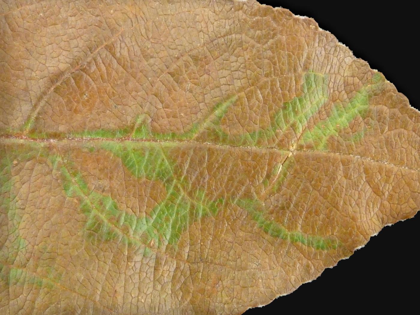 Feuille : présence d’un jaunissement internervaire. Les nervures principales demeurent vertes. Plus tard, le jaunissement fait place à un brunissement. Dans les cas sévères, des brûlures apparaissent entre les nervures. Les vieilles feuilles sont affectées en premier et chutent prématurément.