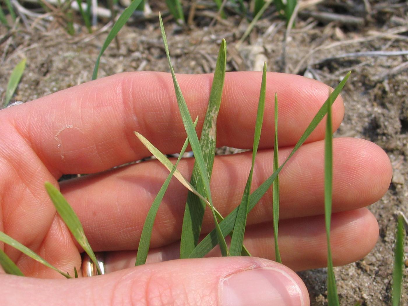 Chez les céréales, ces symptômes sont observés sous les conditions suivantes : nuits claires, humidité relative basse, absence de vent et température nocturne entre 5 et 10 °C. Sous ces conditions, il y a une perte rapide de chaleur à partir de la surface du sol vers l'atmosphère, ce qui permet au froid d'atteindre les plantes. Cet effet est combiné aux matinées ensoleillées avec de la rosée. Les dommages sont surtout observés sur les surfaces foliaires exposées vers le haut et chez le blé, les symptômes apparaissent sur le limbe des feuilles principalement à leur point de flexion. Ce problème non parasitaire est occasionnel et mineur.