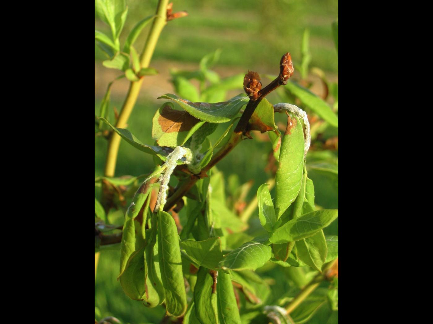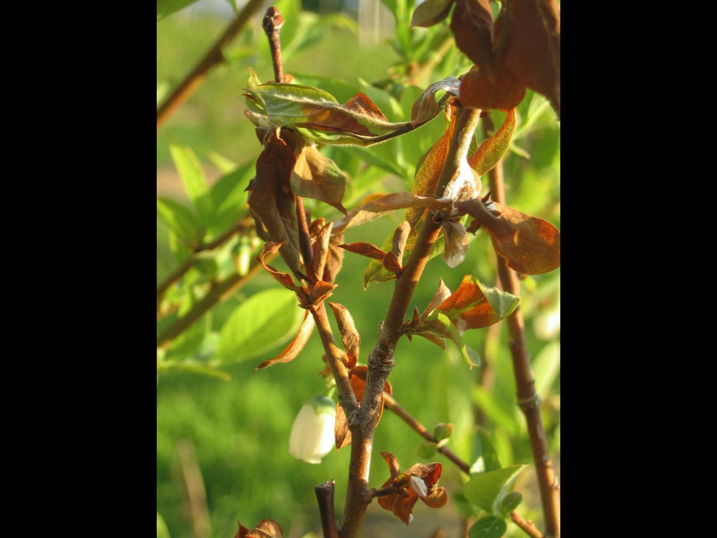 Dans les bleuetières, les engrais sont généralement appliqués au sol. Parfois des engrais foliaires sont employés pour corriger un problème précis. Les applications foliaires sont généralement sans conséquence lorsque réalisées selon la recommandation. Par contre, lorsque le volume d’eau utilisé est trop faible, des brûlures apparaissent rapidement sur le feuillage, car l’engrais est trop concentré. Les excès de fertilisation ou d’engrais foliaires sont occasionnels et mineurs, mais il faut demeurer vigilant face à la gravité des brûlures. Généralement les symptômes sont visibles à différents endroits dans le champ, voire dans tout le champ.