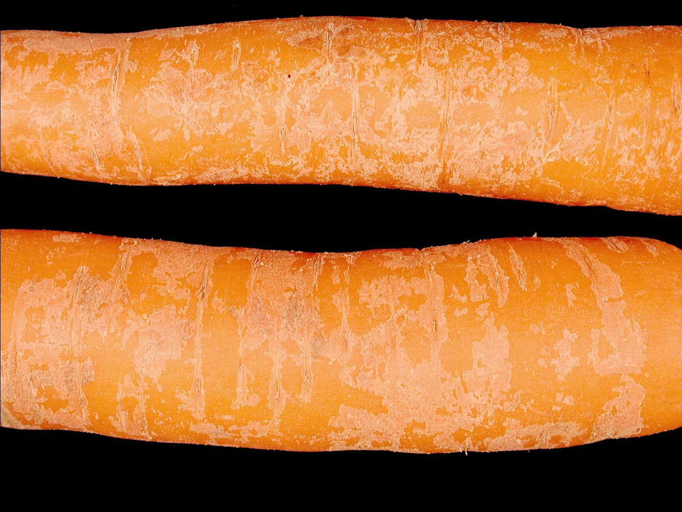 Le blanchiment observé à la surface de l’épiderme de la racine est composé de cellules subérisées mortes qui se desquament. La desquamation est une réaction souvent liée aux stress du milieu ambiant notamment lorsque l’humidité relative est faible, lors de pertes d’eau ou de blessures aux carottes. Cette couche de cellules subérisées est riche en composés phénoliques qui donnent à la carotte un goût amer et un aspect desséché ou vieilli. La desquamation survient généralement après le lavage ou un entreposage prolongé. Ce problème non parasitaire est occasionnel et mineur.