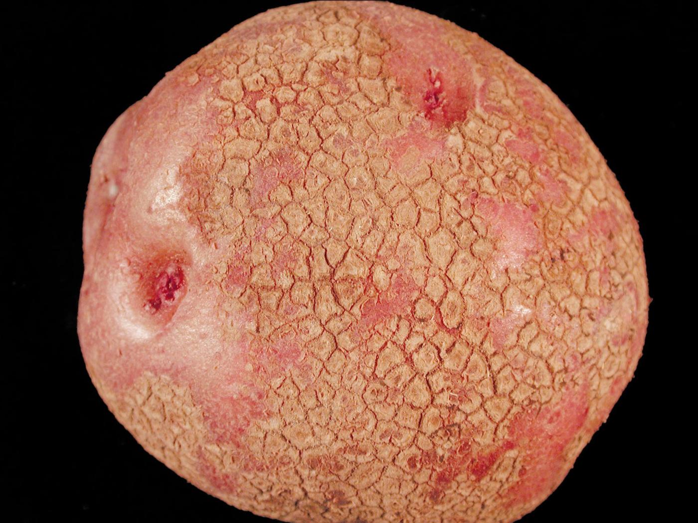 Tubercule : le périderme montre une surface rugueuse, plus foncée et plus épaisse que la normale. Il est gercé ou craquelé en profondeur et ressemble à une peau d’éléphant ou d’alligator.