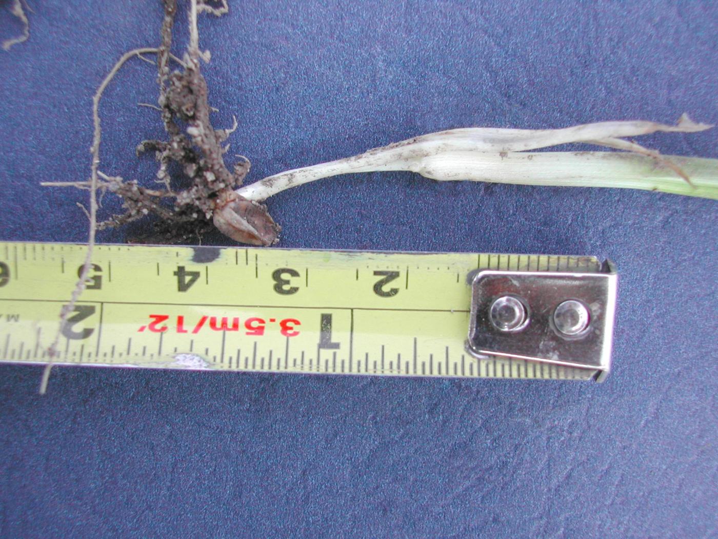 Jeune plant : mortalité des semences, levée difficile et inégale, pousses chétives. La partie basale de la tige et les premières feuilles peuvent être blanchâtres.
