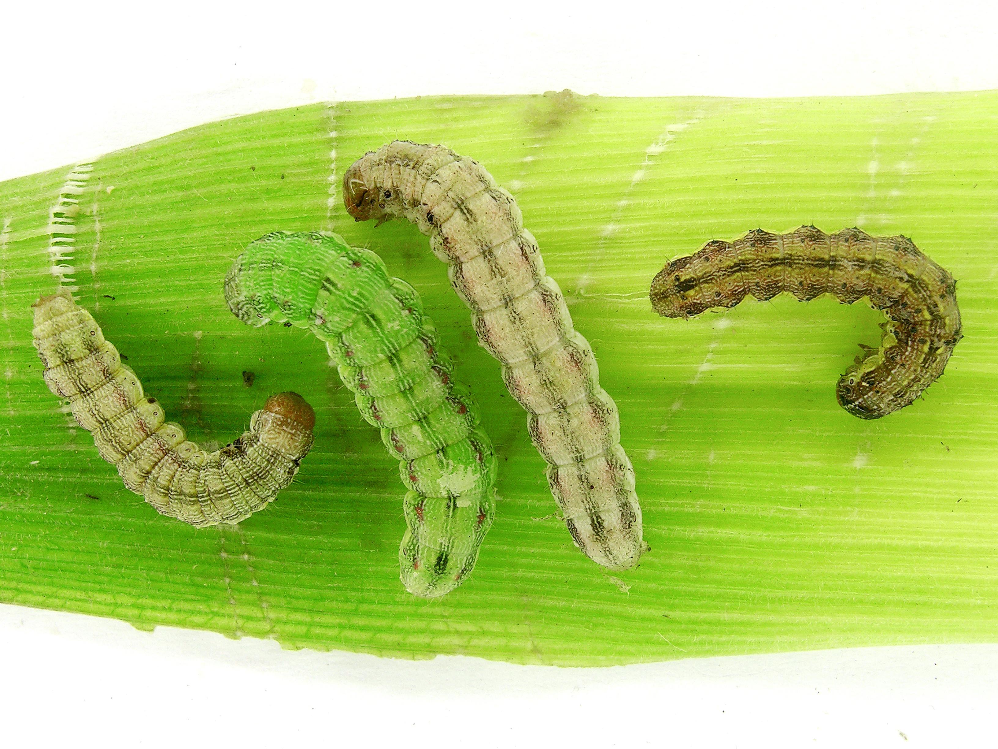 : Quatre larves présentant des colorations différentes