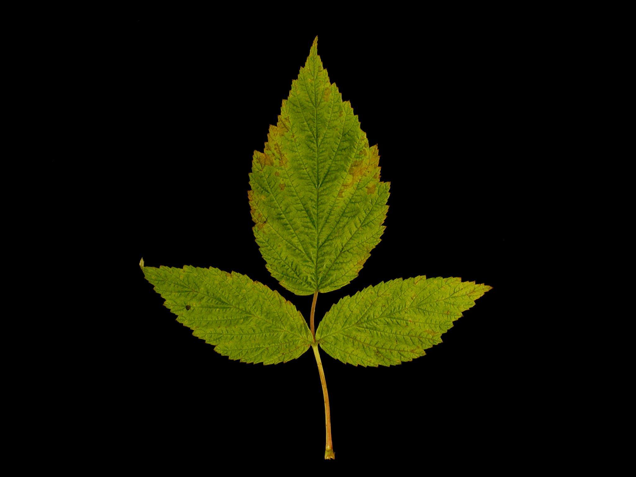 Légende: Jaunissement entre les nervures sur feuille de framboisier