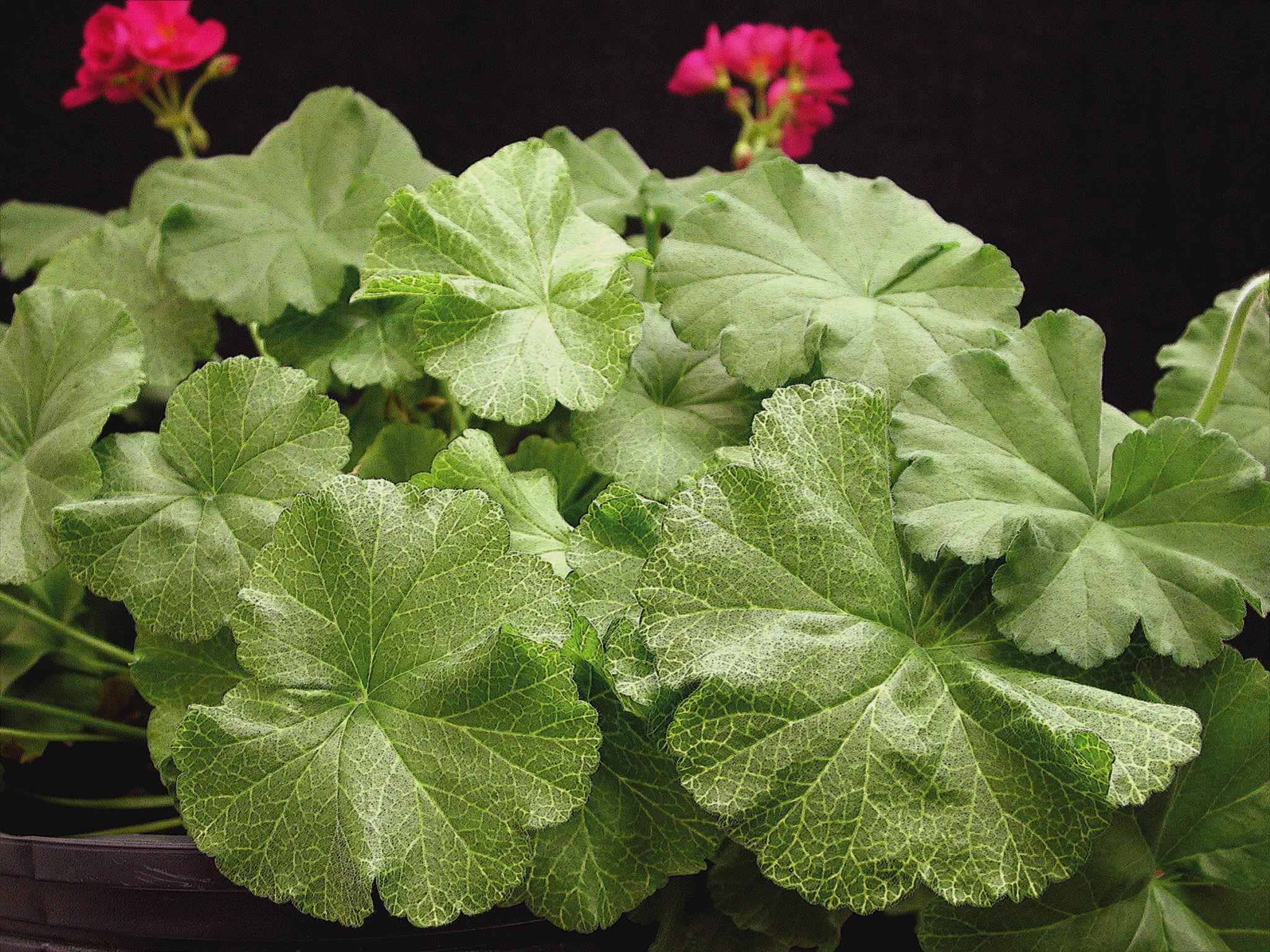 Légende: Jaunissement des nervures sur feuilles de géranium