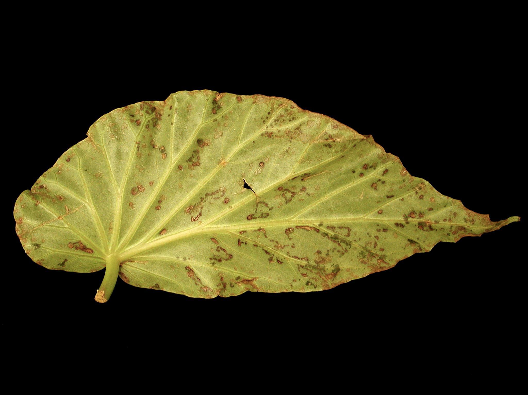 Légende: Taches brunes sur feuille de bégonia