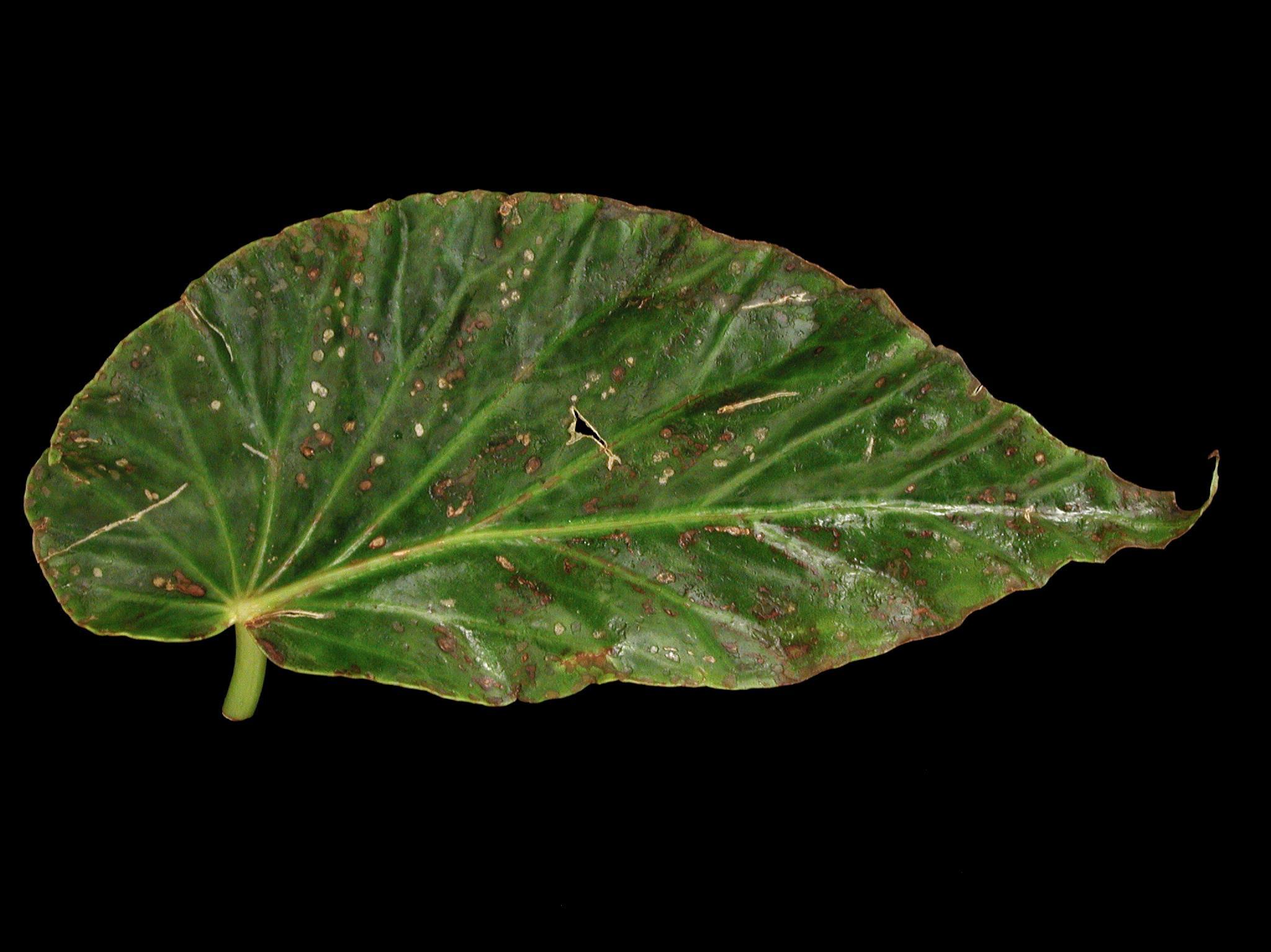Légende: Taches beiges à brunes sur feuille de bégonia