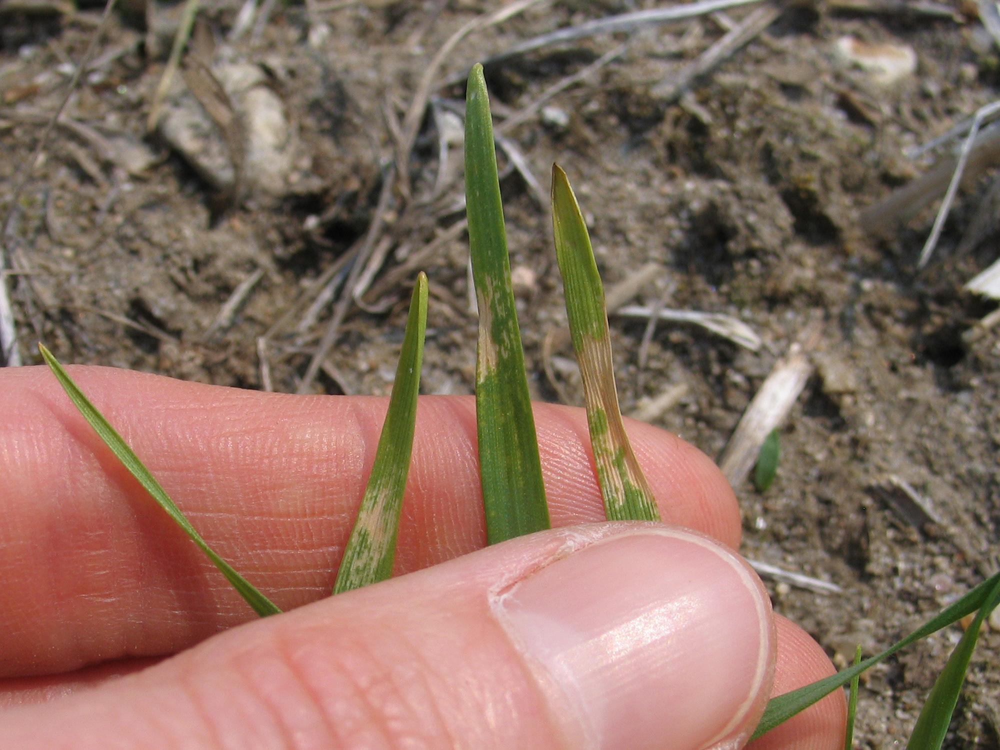 Légende: Brûlure apicale sur des feuilles de blé de printemps