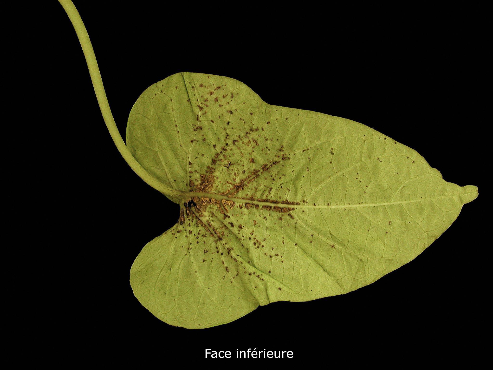Légende: Protubérances brunes sur une feuille d'ipomée