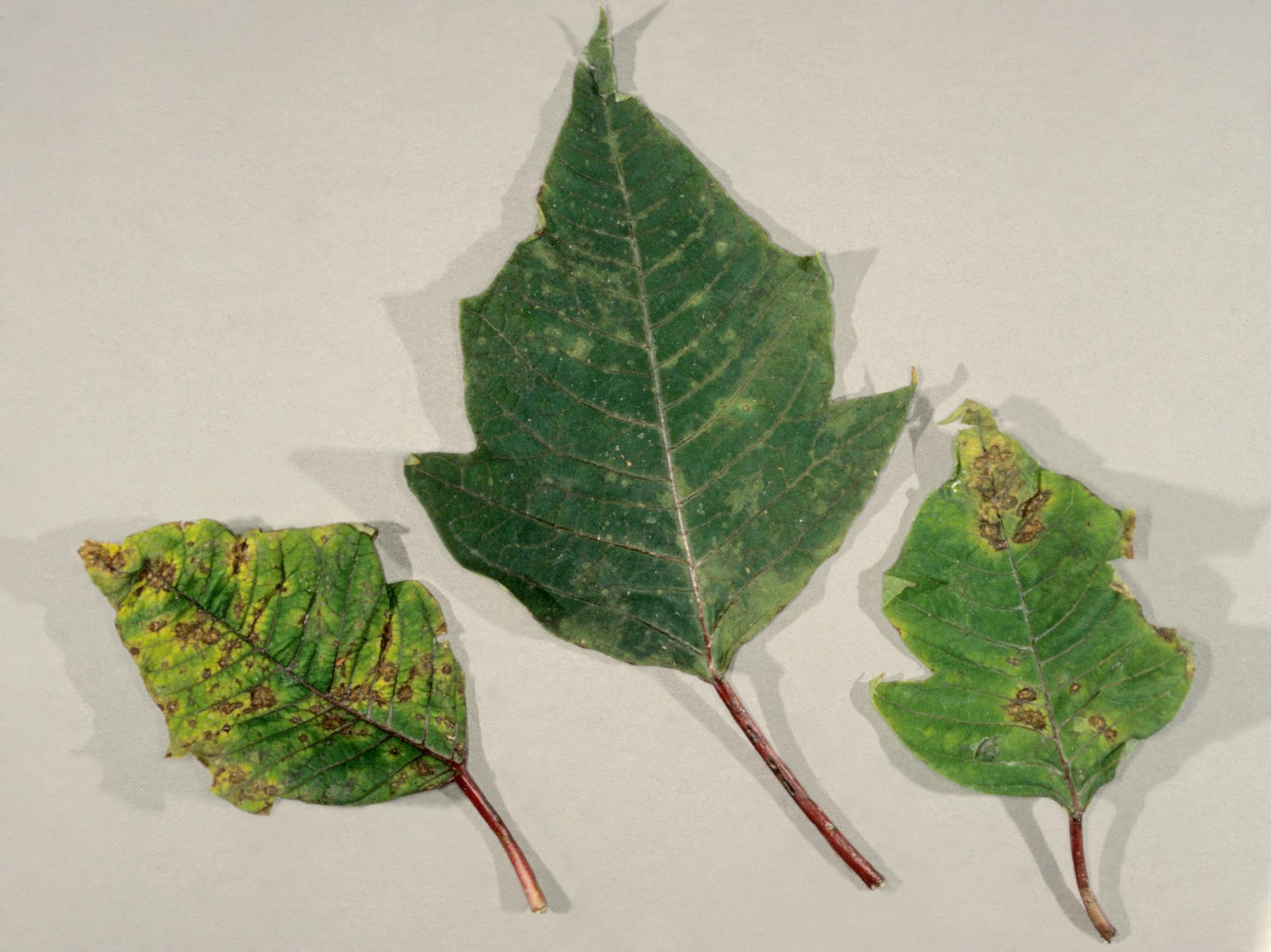 Légende: Taches et brûlures sur feuilles de poinsettia