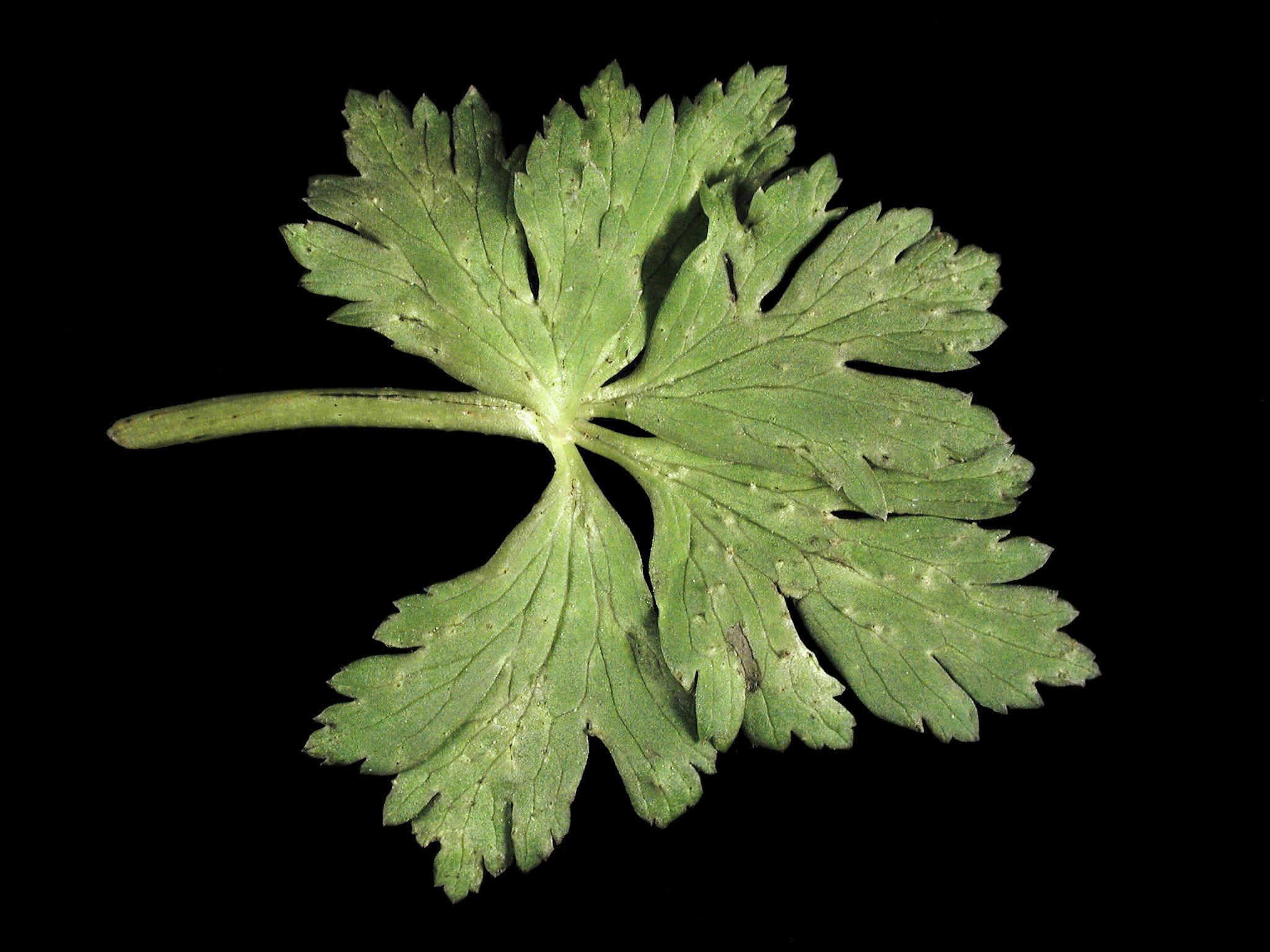 Description: Cette feuille de trolle de Chine (cv 'Golden Queen') cultivée en serre présente de minuscules taches ou ponctuations circulaires et surélevées. Le diamètre des taches est inférieur à 1 mm. Elles sont réparties au hasard sur le limbe et les feuilles affectées comptent de nombreuses taches. Les symptômes sont présents à la face supérieure et inférieure. Les mêmes symptômes sont visibles sur le pétiole, en plus d’un fendillement longitudinal. Les tests de laboratoire se sont avérés négatifs pour la détection de phytoplasme. Par contre, le pH du substrat est élevé (7,1) ce qui peut rendre le bore moins disponible pour la plante. La conseillère mentionne que les symptômes n’ont pas évolué depuis l’envoi de l’échantillon, ce qui signifie que le problème n’est pas de nature infectieuse. Il est possible de croire que les symptômes soient causés par un pH inadéquat du substrat qui a rendu le bore moins disponible pour la plante.